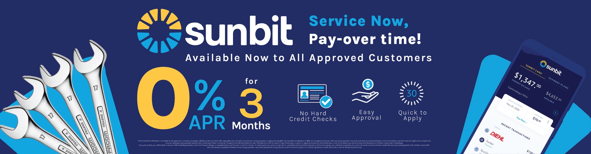 The 3-month 0% APR plan is available for all approved customers. Example: A $300 purchase with 0% APR, repayable over 3 months, would have a down payment of approximately $42 and monthly installments of $86. Actual approval amount, APR, and down payment vary and are based on creditworthiness, state of residence, and loan term. No application, origination, account opening or pre-payment penalty fees. Financing offered is made by Transportation Alliance Bank, Inc. dba TAB Bank. Must be 18 + years of age. Financing is subject to approval, based on creditworthiness, state of residence, your prior history with the products offered using Sunbit technology.