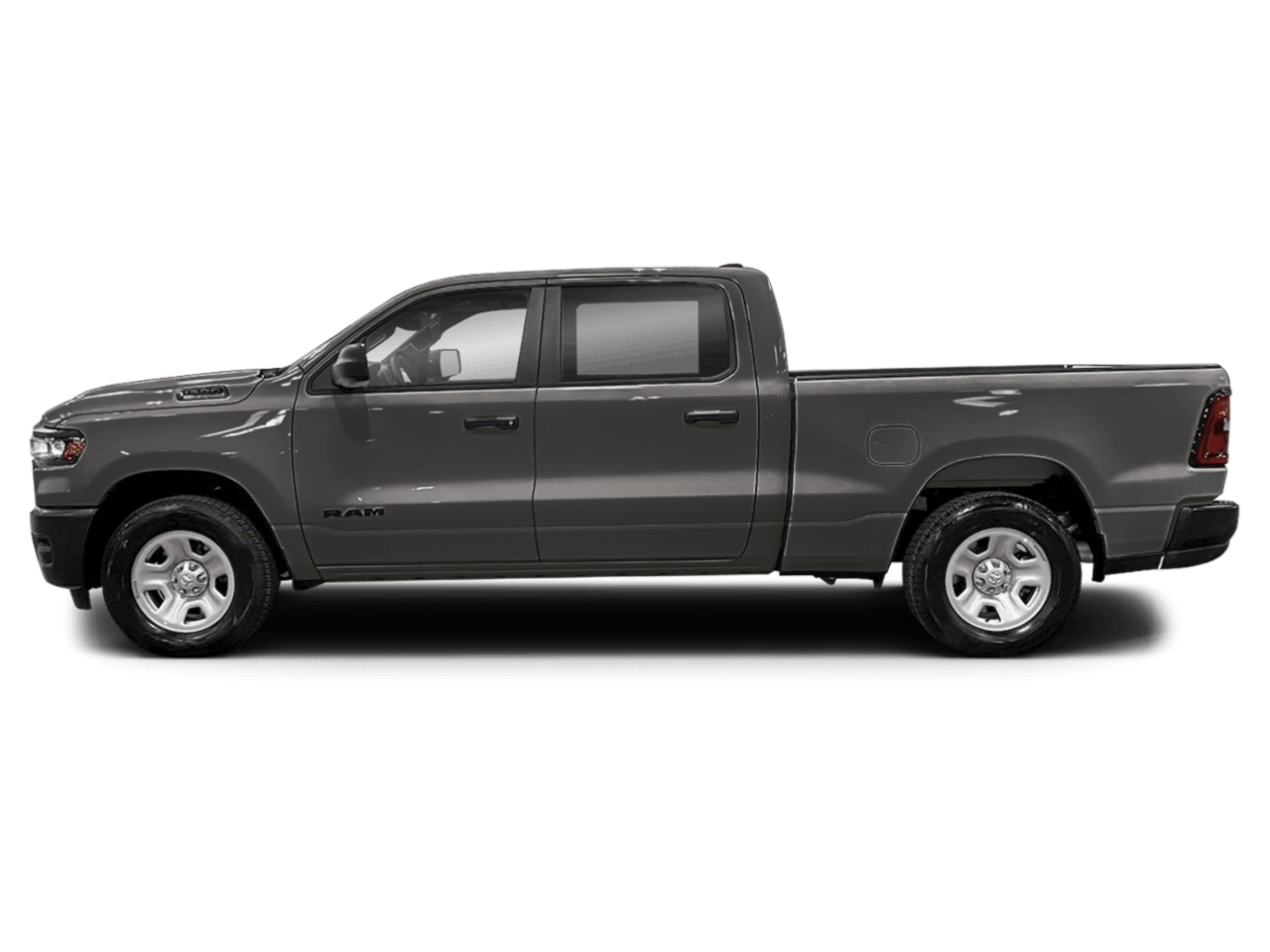 4 Way Front Headrests, 4-Wheel Disc Brakes, 40/20/40 Split Bench Seat, 6 Speakers, ABS brakes, Air Conditioning, AM/FM radio, Anti-Spin Differential Rear Axle, Apple CarPlay/Android Auto, Auto High-beam Headlights, Black Exterior Mirrors, Brake assist, Compass, Delay-off headlights, Driver door bin, Dual front impact airbags, Dual front side impact airbags, Electronic Stability Control, Exterior Mirrors w/Heating Element, Front anti-roll bar, Front Center Armrest, Front reading lights, Front wheel independent suspension, Fully automatic headlights, Heated door mirrors, Heavy Duty Vinyl 40/20/40 Split Bench Seat, Illuminated entry, Low tire pressure warning, Manual Adjust 4-Way Driver Seat, Manual Adjust 4-Way Front Passenger Seat, Manual Folding Exterior Mirrors, Mopar Black Tubular Side Steps, Occupant sensing airbag, Outside temperature display, Overhead airbag, Overhead console, Panic alarm, ParkView Rear Back-Up Camera, Passenger door bin, Passenger vanity mirror, Power door mirrors, Power steering, Power windows, Radio data system, Radio: Uconnect 5 W w/8.4" Display, RAM Grille Badge - Black, Rear anti-roll bar, Rear step bumper, Remote keyless entry, Speed control, Tachometer, Telescoping steering wheel, Tilt steering wheel, Traction control, Variably intermittent wipers, Voltmeter, and Wheels: 18" x 7.5" Steel Painted. Granite Crystal Metallic Clearcoat 2025 Ram 1500 Tradesman 4WD 8-Speed Automatic 3.6L V6 24V VVT