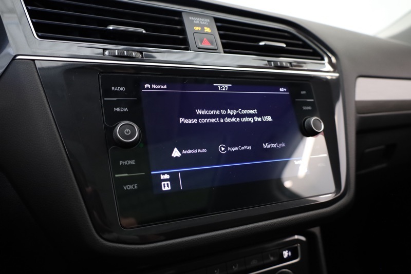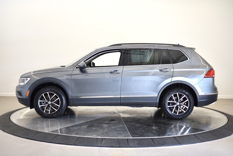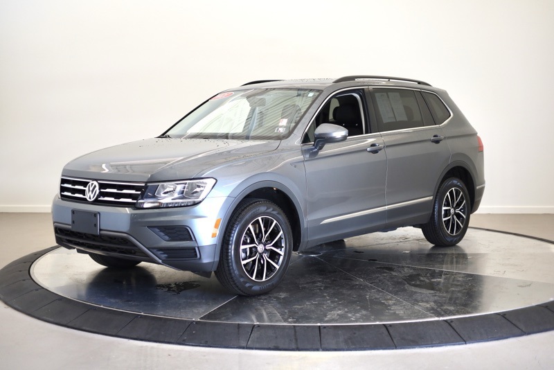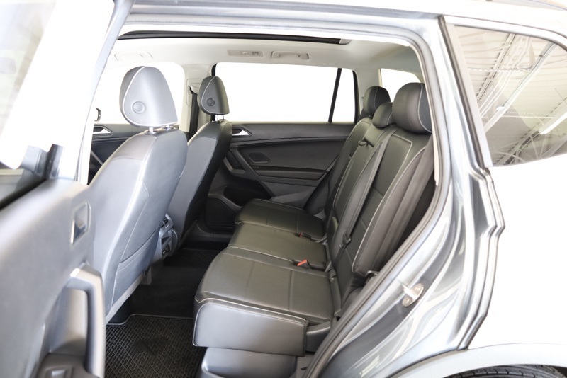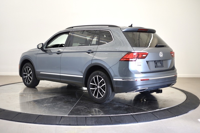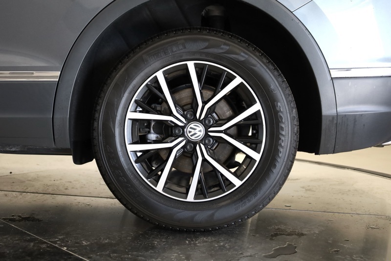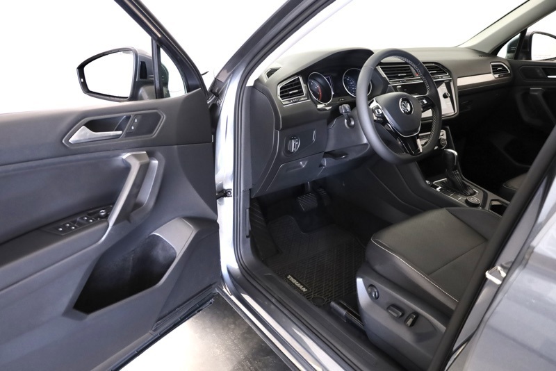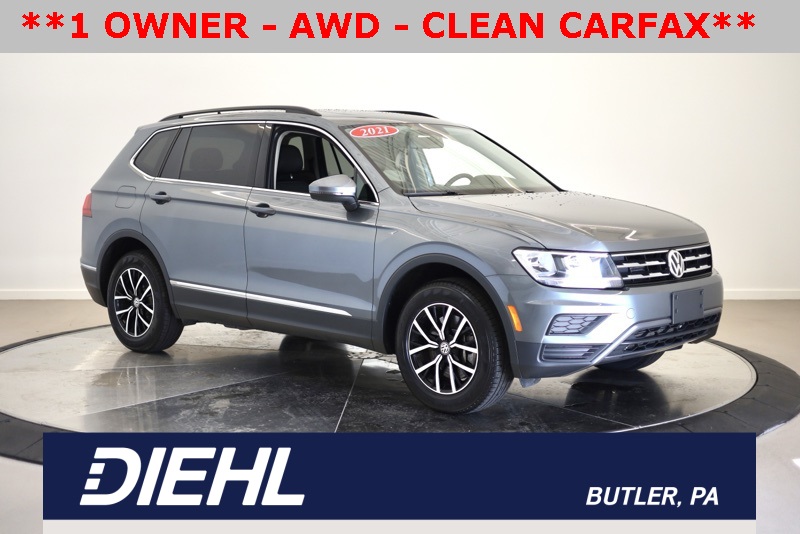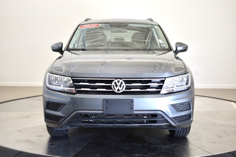 **ALL WHEEL DRIVE**, **BLUETOOTH HANDS FREE PHONE**, **LEATHER**, **BACK-UP CAMERA**, **CLEAN CARFAX ONE OWNER**, **PANORAMIC MOONROOF**, **FORWARD COLLISION WARNING**, **BLIND SPOT DETECTION**, **ADAPTIVE CRUISE CONTROL**, **APPLE CARPLAY / ANDROID AUTO**, **POWER DRIVER SEAT**, **PUSH BUTTON START**, AWD, 2-Row Rubber Monster Mats w/Logo Kit (Set of 4), 3.33 Axle Ratio, 4-Wheel Disc Brakes, 4-Wheel Independent Suspension, 6 Speakers, ABS brakes, Air Conditioning, Alloy wheels, AM/FM radio: SiriusXM with 360L, Automatic temperature control, Brake assist, Bumpers: body-color, Compass, Delay-off headlights, Driver door bin, Driver vanity mirror, Dual front impact airbags, Dual front side impact airbags, Electronic Stability Control, Emergency communication system: VW Car-Net services (capabilities require enrollment or subscription), Exterior Parking Camera Rear, Forward collision: FCW w/Autonomous Emergency Braking mitigation, Four wheel independent suspension, Front anti-roll bar, Front Bucket Seats, Front Center Armrest, Front dual zone A/C, Front reading lights, Fully automatic headlights, Heated door mirrors, Heated Front Comfort Seats, Heated front seats, Heavy Duty Trunk Liner w/VW CarGo Blocks, Illuminated entry, Leather Shift Knob, Low tire pressure warning, Occupant sensing airbag, Outside temperature display, Overhead airbag, Overhead console, Panic alarm, Panoramic Sunroof Package, Passenger door bin, Passenger vanity mirror, Perforated V-Tex Leatherette Seating Surfaces, Power door mirrors, Power driver seat, Power steering, Power windows, Radio data system, Radio: MIB3 Composition Media AM/FM/HD, Rear anti-roll bar, Rear reading lights, Rear seat center armrest, Rear window defroster, Rear window wiper, Remote keyless entry, Roof rack: rails only, Security system, Speed control, Speed-sensing steering, Split folding rear seat, Spoiler, Steering wheel mounted audio controls, Tachometer, Telescoping steering wheel, Tilt steering wheel, Traction control, Trip computer, Turn signal indicator mirrors, Variably intermittent wipers, VW Care, Wheels: 17" 2-Tone Machined & Black Alloy. CARFAX One-Owner. Clean CARFAX. Platinum Gray Metallic 2021 Volkswagen Tiguan 2.0T SE AWD 8-Speed Automatic with Tiptronic 2.0L TSI DOHC
