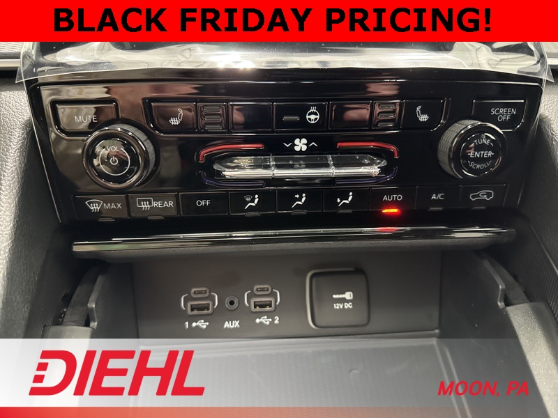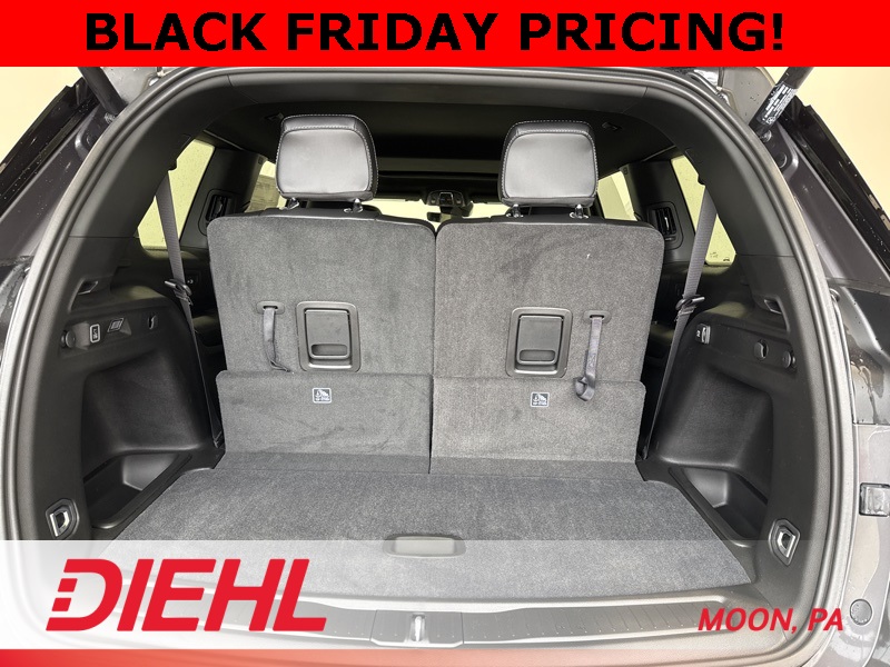 Inside, sophistication meets practicality. The black leatherette and suede seats are heated in both the front and second rows, the heated steering wheel adds comfort to cold commutes, and the tri zone climate control keeps everyone happy from front to back. The 10.1 inch touchscreen with Apple CarPlay, Android Auto, and voice command makes every trip connected and convenient. With the Customer Preferred Package, you also get a power liftgate, remote start, rain sensing wipers, wireless charging pad, and black exterior accents that give this SUV a sleek, modern edge.