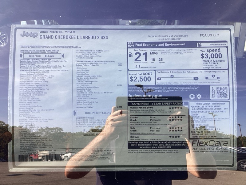 Diamond Black Crystal Pearlcoat 2025 Grand Cherokee L Jeep Laredo 4D Sport Utility 4WD 8-Speed Automatic 3.6L V6 24V VVT Price includes: $1000 - 2025 National Stellantis Loyalty Bonus Cash . Exp. 03/31/2026 $2000 - 2025 National Bonus Cash . Exp. 03/31/2026 $2000 - 2025 National SFS Lease Loyalty Bonus Cash. Exp. 03/31/2026 $2500 - 2025 National Retail Bonus Cash . Exp. 03/31/2026