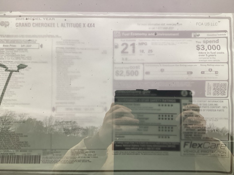 Diamond Black Crystal Pearlcoat 2025 Grand Cherokee L Jeep Altitude X 4D Sport Utility 4WD 8-Speed Automatic 3.6L V6 24V VVT Price includes: $1000 - 2025 National Stellantis Loyalty Bonus Cash . Exp. 03/31/2026 $2000 - 2025 National Bonus Cash . Exp. 03/31/2026 $2000 - 2025 National SFS Lease Loyalty Bonus Cash. Exp. 03/31/2026 $2500 - 2025 National Retail Bonus Cash . Exp. 03/31/2026 $500 - 2025 National 2025 First Responder Bonus Cash. Exp. 01/04/2027