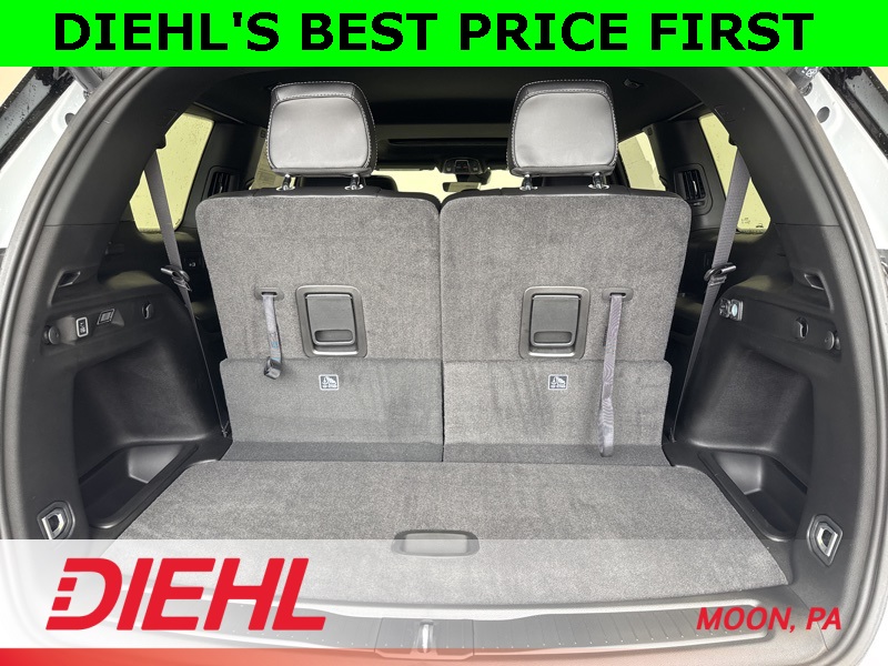 Inside, sophistication meets practicality. The black leatherette and suede seats are heated in both the front and second rows, the heated steering wheel adds comfort to cold commutes, and the tri zone climate control keeps everyone happy from front to back. The 10.1 inch touchscreen with Apple CarPlay, Android Auto, and voice command makes every trip connected and convenient. With the Customer Preferred Package, you also get a power liftgate, remote start, rain sensing wipers, wireless charging pad, and black exterior accents that give this SUV a sleek, modern edge.