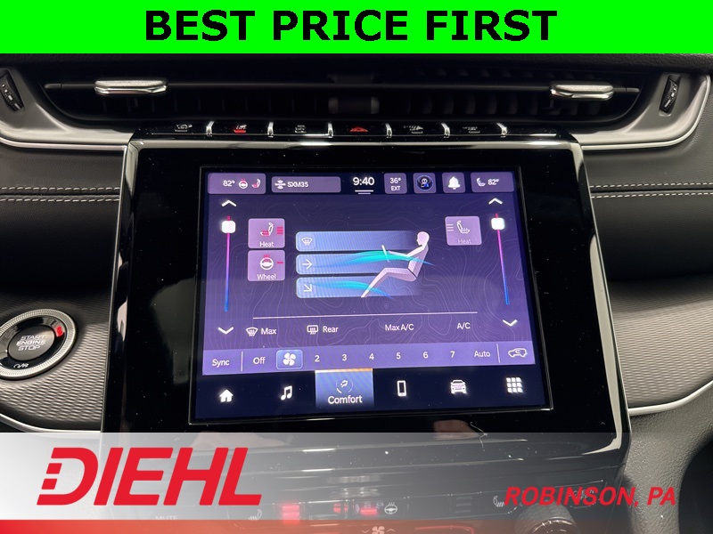 Technology is front and center with the 8.4 inch Uconnect 5 touchscreen, Apple CarPlay, Android Auto, Jeep Connected Services, and a crisp digital cluster display. Add in adaptive cruise control with stop and go, blind spot monitoring, rear cross path detection, ParkView rear backup camera, rain sensing wipers, and advanced brake assist, and this SUV is looking out for you at every turn.