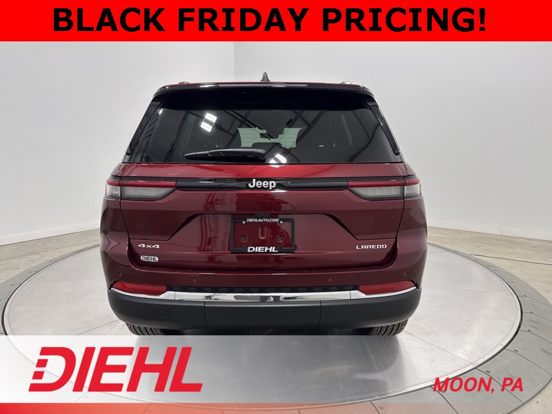 Safety tech like Adaptive Cruise Control with Stop and Go, Blind Spot Monitoring, and ParkSense Rear Park Assist means your Grand Cherokee watches your back even when youre distracted by how good it looks. With 4x4 confidence and 26 highway MPG efficiency, this new Jeep Grand Cherokee Laredo X for sale near Pittsburgh is ready for the weekday grind or the weekend getaway, whichever you decide first. Stop by Diehl of Moon Chrysler Jeep Dodge Ram in Moon Township PA for the best new car deals near Pittsburgh and experience why the Grand Cherokee remains one of the most awarded SUVs ever built. Schedule your test drive today and let luxury do the heavy lifting. Price includes: $1500 - 2025 National Stellantis Loyalty Retail Bonus Cash . Exp. 01/05/2026 $2000 - 2025 National SFS Lease Loyalty Bonus Cash. Exp. 01/05/2026 $2250 - 2025 National Retail Bonus Cash . Exp. 01/05/2026 $500 - 2025 National 2025 First Responder Bonus Cash. Exp. 01/05/2026