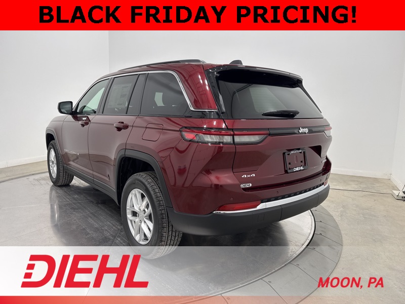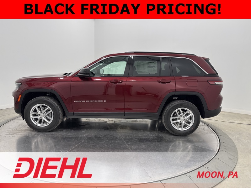 Safety tech like Adaptive Cruise Control with Stop and Go, Blind Spot Monitoring, and ParkSense Rear Park Assist means your Grand Cherokee watches your back even when youre distracted by how good it looks. With 4x4 confidence and 26 highway MPG efficiency, this new Jeep Grand Cherokee Laredo X for sale near Pittsburgh is ready for the weekday grind or the weekend getaway, whichever you decide first. Stop by Diehl of Moon Chrysler Jeep Dodge Ram in Moon Township PA for the best new car deals near Pittsburgh and experience why the Grand Cherokee remains one of the most awarded SUVs ever built. Schedule your test drive today and let luxury do the heavy lifting. Price includes: $500 - 2025 National 2025 First Responder Bonus Cash. Exp. 01/05/2026