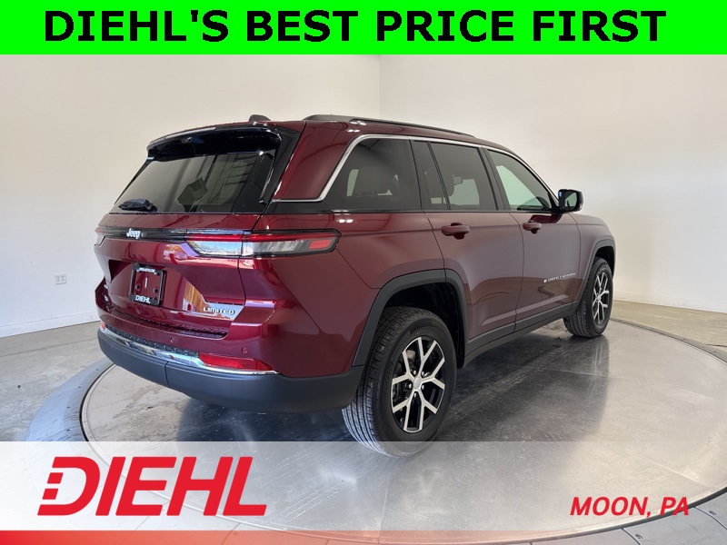 Advanced safety features include Adaptive Cruise Control, Blind Spot Monitoring, ParkSense Front and Rear Park Assist, and Forward Collision Warning Plus, all working together to protect what matters most. With 26 highway MPG efficiency and world class comfort, this new Jeep Grand Cherokee Limited 4x4 for sale near Pittsburgh is ready to elevate every mile. Visit Diehl of Moon Chrysler Jeep Dodge Ram in Moon Township PA today for the best new car deals near Pittsburgh and experience premium Jeep craftsmanship firsthand. Schedule your test drive and discover what driving luxury feels like. Price includes: $1500 - 2025 National Stellantis Loyalty Retail Bonus Cash . Exp. 02/02/2026 $2000 - 2025 National SFS Lease Loyalty Bonus Cash. Exp. 02/02/2026 $2250 - 2025 National Retail Bonus Cash . Exp. 02/02/2026 $500 - 2025 National 2025 First Responder Bonus Cash. Exp. 01/04/2027