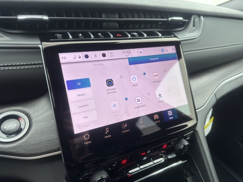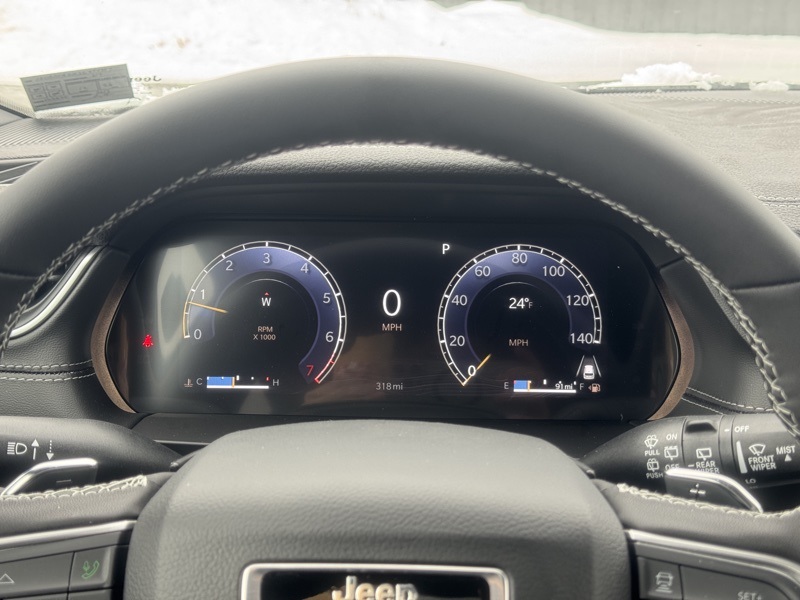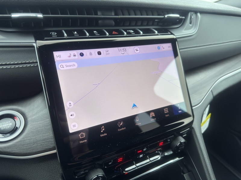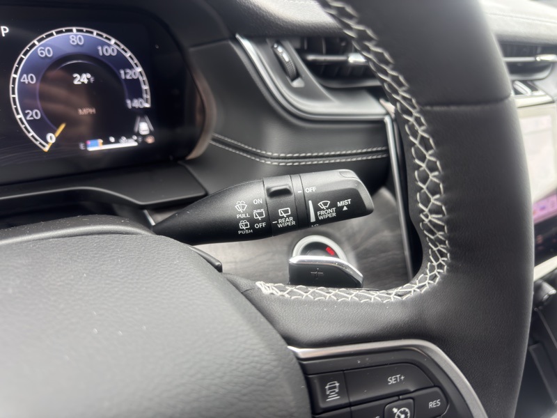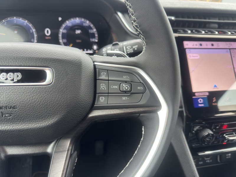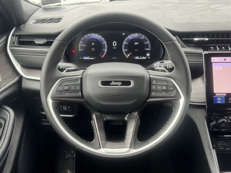 Technology is centered around Uconnect 5 Nav with a 10.1" display, built-in navigation system, SiriusXM with 360L, audio memory, steering wheel mounted controls, compass, trip computer, tachometer, and voltmeter. The Active Noise Control System helps create a quieter driving experience.