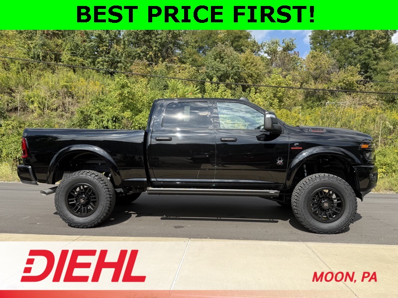 If you've been hunting for a truck that looks like it just bench-pressed a bulldozer and then polished its boots, meet the 2025 Ram 2500 Big Horn Crew Cab Black Widow Edition. This beast, available now at Diehl of Moon, blends legendary Ram strength with the sinister swagger of a Black Widow custom upfit. Cloaked in Diamond Black Crystal Pearl-Coat paint and wearing 20-inch black off-road wheels wrapped in 37-inch premium all-terrain tires, this heavy-duty pickup doesn't just roll into Pittsburgh.. it owns the road like its auditioning for a superhero film.