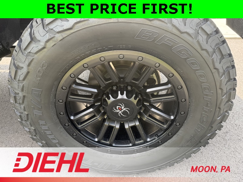 Inside, custom leather seating, red LED interior lighting, and a 12-inch Uconnect touchscreen with navigation and Harman Kardon sound make this rig part luxury lounge, part command center. Whether you're hauling gear, heading to the job site, or cruising the backroads of Western PA, you'll appreciate the heated seats, all-weather floor mats, and safety tech that keeps confidence as high as the lift kit.
