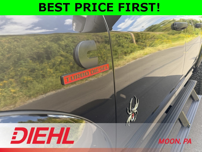 Under the hood, the 6.7L Cummins Turbo Diesel engine flexes its muscle with the kind of torque that makes towing a yacht feel like pulling a wagon. Paired with an 8-speed automatic transmission, its smooth when you want it and ferocious when you need it. A 4-inch suspension lift system elevates your game,literally, giving you commanding views of Moon Township traffic while letting everyone else know they're in the presence of greatness. Add power running boards, body-color smooth fender flares, and Black Widow badging, and you've got a truck that's as much a lifestyle statement as it is a workhorse.