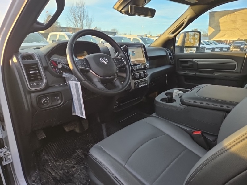 This 2025 Ram 5500HD Tradesman 4WD is built for demanding commercial work, powered by a Cummins 6.7L I6 turbodiesel paired with an 8-speed automatic transmission and a 4.44 axle ratio. Dual rear wheels, a heavy duty front suspension, and power take-off capability on both sides support serious equipment and upfit needs.
