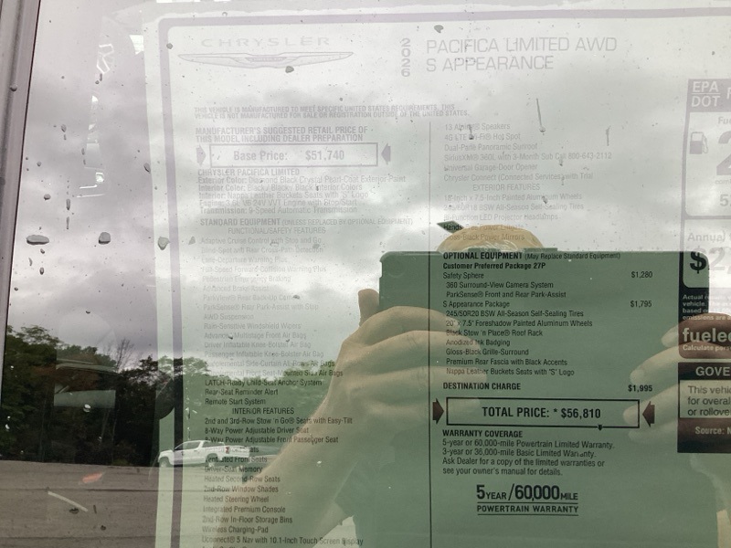Diamond Black Crystal Pearlcoat 2026 Pacifica Chrysler Limited 4D Passenger Van AWD 9-Speed 948TE Automatic 3.6L V6 24V VVT Price includes: $3500 - 2026 National Retail Bonus Cash . Exp. 03/31/2026 $500 - 2026 National 2026 Military Bonus Cash . Exp. 03/29/2026
