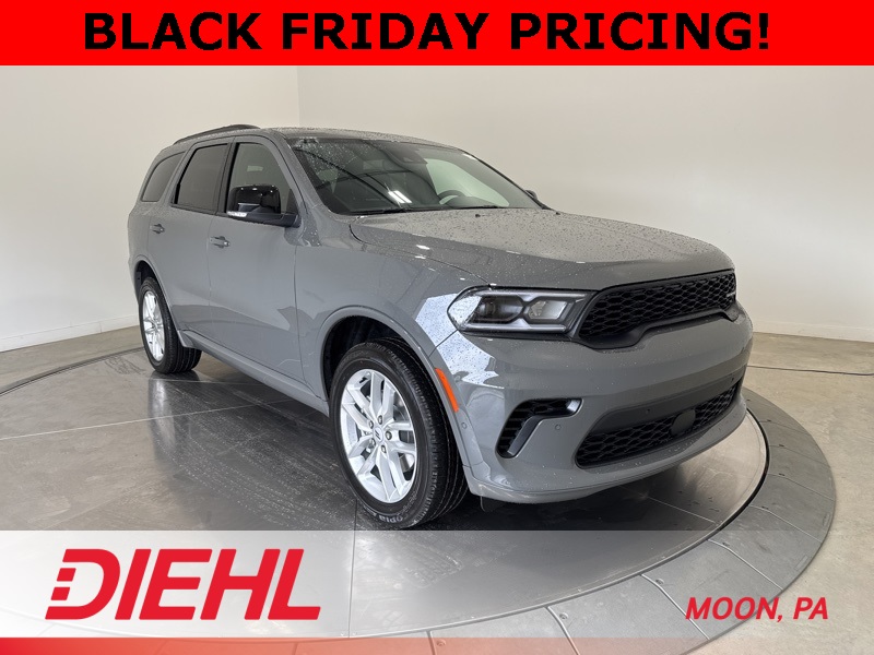Safety and confidence come standard with features like Blind Spot Monitoring, ParkSense Rear Park Assist, Adaptive Cruise Control, and Forward Collision Warning. With room for seven passengers and 24 highway MPG efficiency, this new Dodge Durango GT Blacktop AWD for sale near Pittsburgh delivers power, style, and practicality in one bold package. Visit Diehl of Moon Chrysler Jeep Dodge Ram in Moon Township PA today for the best new SUV deals near Pittsburgh and see why the Durango continues to dominate the road. Price includes: $500 - 2026 National 2026 First Responder Bonus Cash . Exp. 01/05/2026
