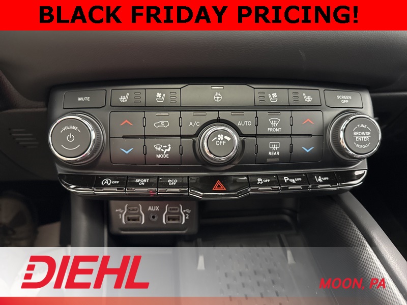 The Blacktop Package transforms this SUV into a statement piece with gloss black 20 inch aluminum wheels, black exterior accents, and a sleek road presence that turns heads in Pittsburgh and beyond. Inside, comfort rules the road with heated front and second row seats, tri zone automatic temperature control, and an 8 way power driver seat with lumbar support. The 10.1 inch Uconnect 5 touchscreen with Apple CarPlay, Android Auto, and voice command brings next level tech to every trip while the nine speaker Alpine premium audio system fills the cabin with rich sound.