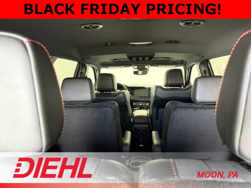 The Blacktop Package transforms this SUV into a statement piece with gloss black 20 inch aluminum wheels, black exterior accents, and a sleek road presence that turns heads in Pittsburgh and beyond. Inside, comfort rules the road with heated front and second row seats, tri zone automatic temperature control, and an 8 way power driver seat with lumbar support. The 10.1 inch Uconnect 5 touchscreen with Apple CarPlay, Android Auto, and voice command brings next level tech to every trip while the nine speaker Alpine premium audio system fills the cabin with rich sound.
