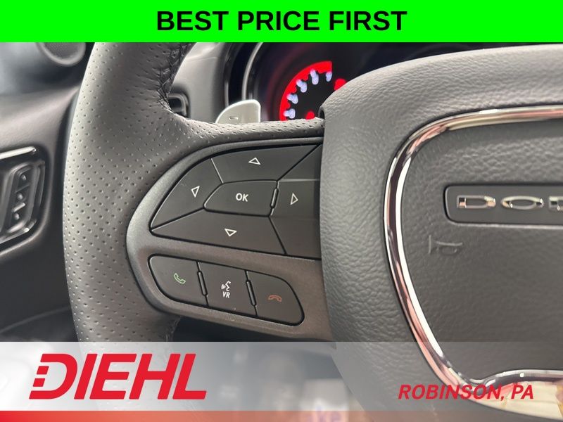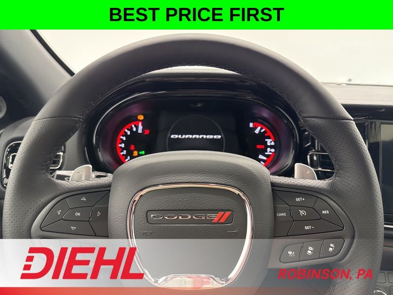 The interior of the Durango GT Plus is designed with your comfort and convenience in mind. Enjoy the luxurious leather-wrapped steering wheel, heated front seats, and the convenience of wireless charging. The Uconnect 5 infotainment system with a 10.1-inch display keeps you connected and entertained, while the 506-watt amplifier and 9 Alpine speakers provide a premium audio experience.
