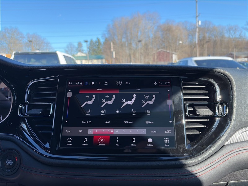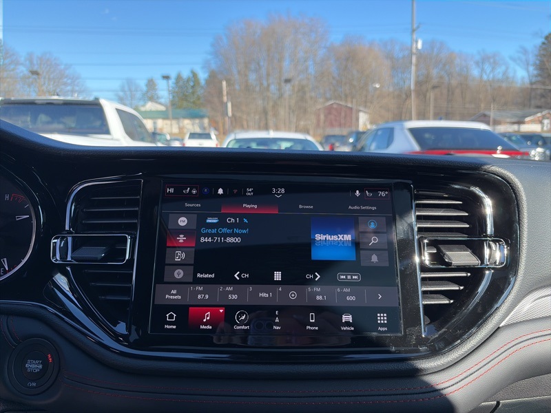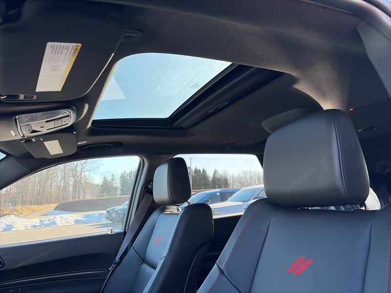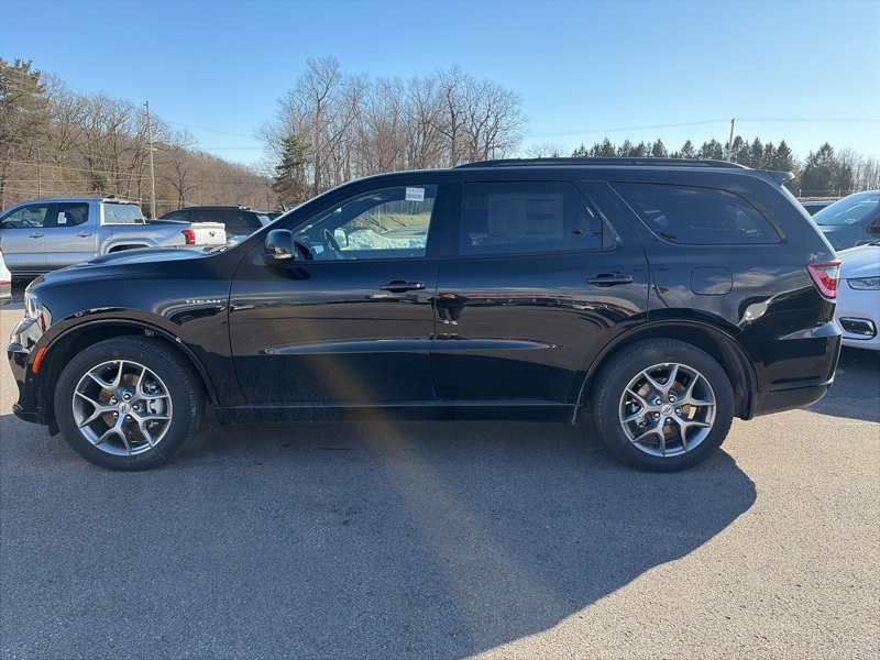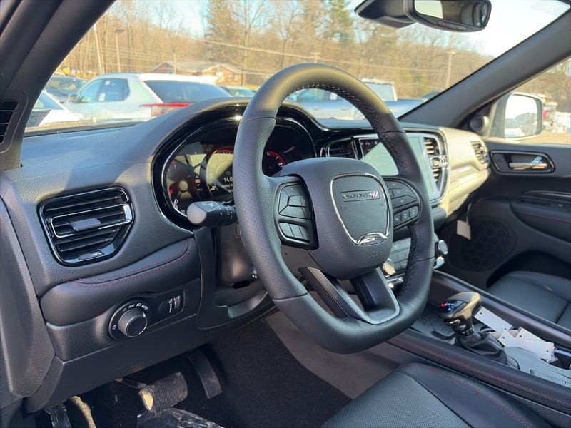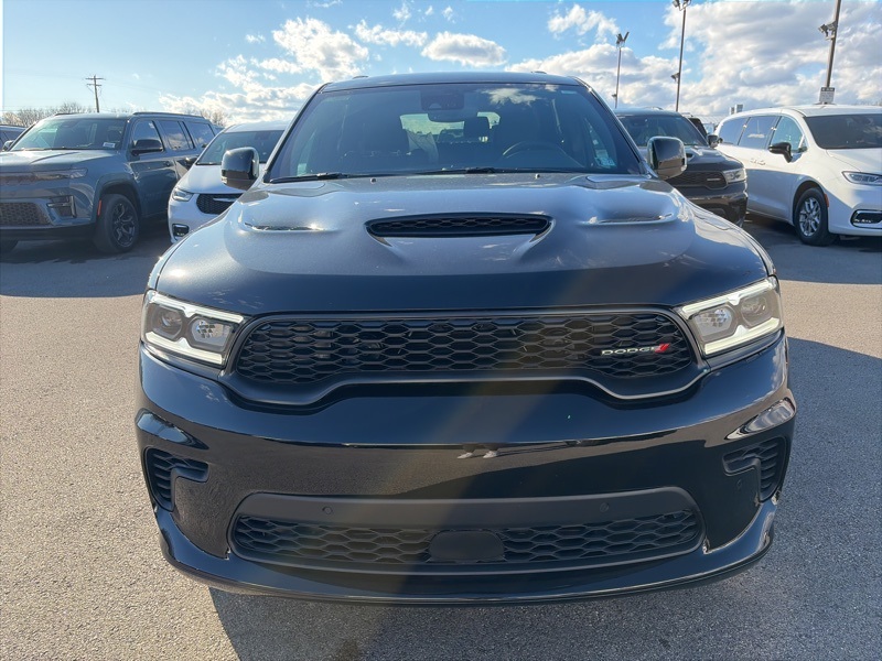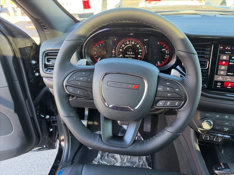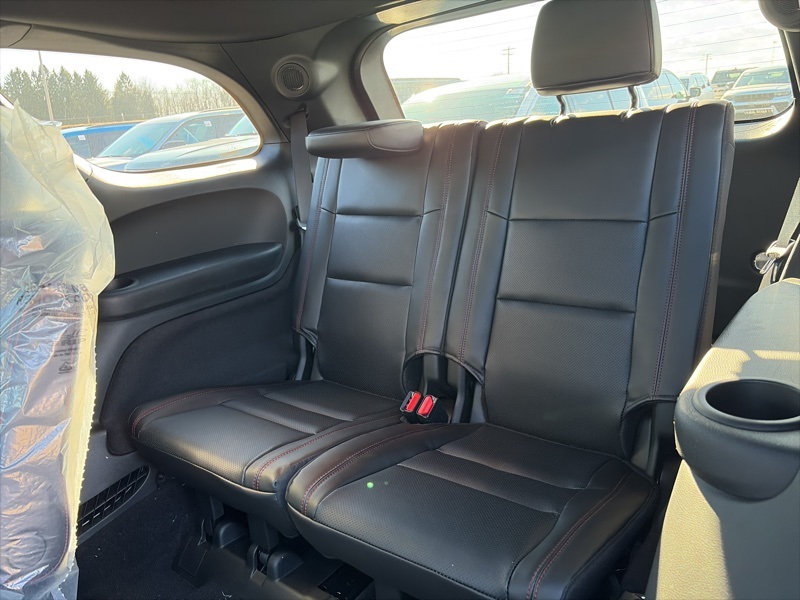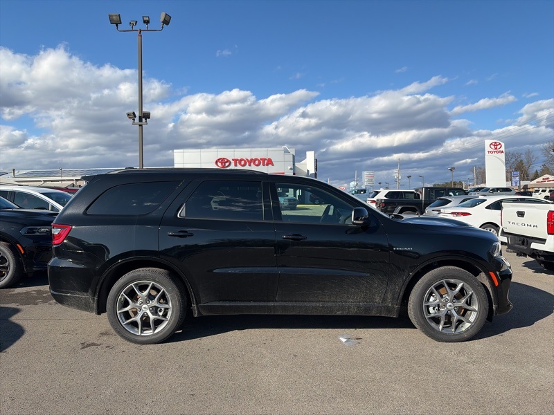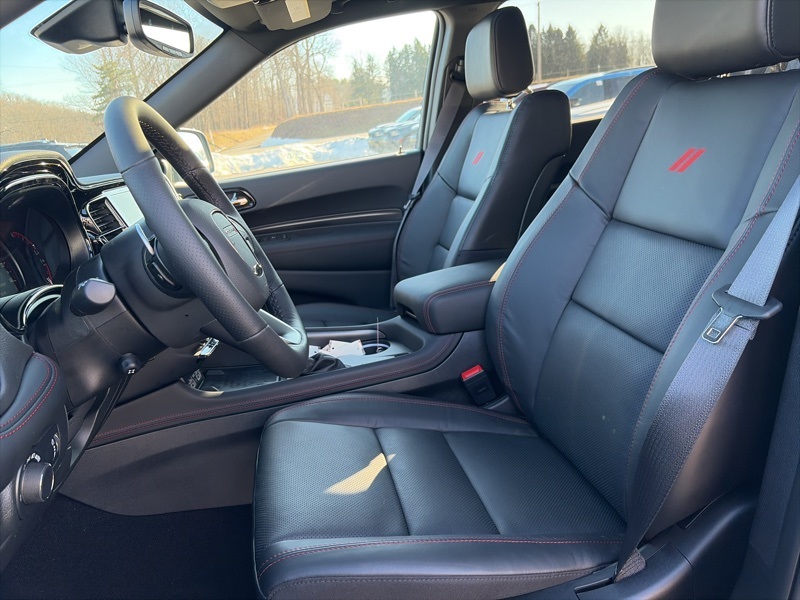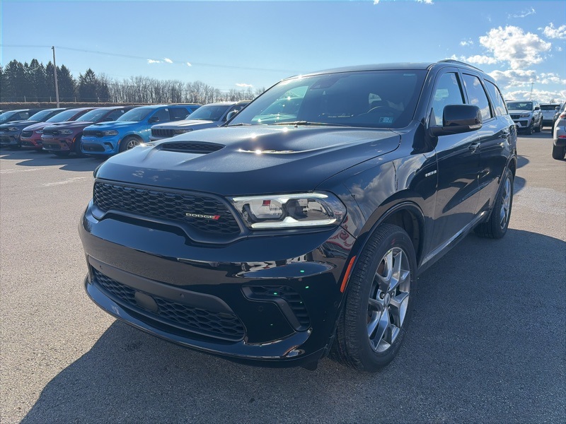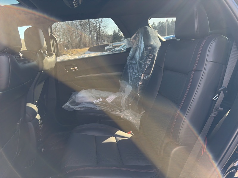 Quick Order Package 22T GT Plus (115V Auxiliary Power Outlet, 7 and 4 Pin Wiring Harness, Adaptive Cruise Control with Stop, Auto High Beam Headlamp Control, Auto-Dimming Exterior Driver Mirror, Black Roof Rails, Blind Spot with Trailer Detection, Class IV Receiver Hitch, Dual Remote USB Port - Charge Only, Exterior Mirrors with Heating Element, Exterior Mirrors with Memory, Exterior Mirrors with Supplemental Signals, Floor Console with Leather Armrest, Full Speed Forward Collision Warning Plus, Gloss Black Exterior Mirrors, Heated Second Row Seats, Integrated Roof Rail Crossbars, Leather Trimmed Bucket Seats, Leather Wrapped Door Panels, LED Auxiliary Low Beam and Turn Signal, Power 6x9 Multi-Function Foldaway Mirrors, Power 8-Way Driver Memory 8-Way Passenger Seats, Power Driver/Passenger 4-Way Lumbar Adjust, Power Sunroof, Power Tilt and Telescopic Steering Column, Radio/Driver Seat/Mirrors Memory, Red Accent Stitching, Trailer Brake Control, and Ventilated Front Seats), AWD, 2nd Row Fold/Tumble Captain Chairs, 2nd Row Mini Console with Cupholders, 2nd Row Seat Mounted Inboard Armrests, 3.09 Rear Axle Ratio, 3rd Row Floor Mat and Mini Console, 3rd row seats: split-bench, 4-Wheel Disc Brakes, 6-Passenger Seating, 9 Speakers, ABS brakes, Air Conditioning, Alloy wheels, AM/FM radio: SiriusXM w/360L, Apple CarPlay/Android Auto, Auto-dimming Rear-View mirror, Auto-leveling suspension, Automatic temperature control, Brake assist, Bumpers: body-color, Cloth Bucket Seats with Shift Insert, Compass, Delay-off headlights, Driver door bin, Driver vanity mirror, Dual front impact airbags, Dual front side impact airbags, Electronic Stability Control, Emergency communication system: Dodge Connect, Four wheel independent suspension, Front anti-roll bar, Front Bucket Seats, Front Center Armrest w/Storage, Front dual zone A/C, Front reading lights, Fully automatic headlights, Garage door transmitter, Heated door mirrors, Heated front seats, Heated steering wheel, Illuminated entry, Knee airbag, Leather steering wheel, Low tire pressure warning, Navigation System, Occupant sensing airbag, Outside temperature display, Overhead airbag, Overhead console, Panic alarm, ParkView Rear Back-Up Camera, Passenger door bin, Passenger vanity mirror, Power door mirrors, Power driver seat, Power Liftgate, Power steering, Power windows, Radio data system, Radio: Uconnect 5 Nav with 10.1" Display, Rain sensing wipers, Rear air conditioning, Rear anti-roll bar, Rear Load Leveling Suspension, Rear reading lights, Rear seat center armrest, Rear window defroster, Rear window wiper, Remote keyless entry, Security system, Speed control, Speed-sensing steering, Speed-Sensitive Wipers, Split folding rear seat, Spoiler, Sport steering wheel, Steering wheel mounted audio controls, Tachometer, Telescoping steering wheel, Tilt steering wheel, Traction control, Trip computer, Variably intermittent wipers, Voltmeter, and Wheels: 20" x 8" Satin Carbon Split 5-Spoke. AWD. DB Black Crystal Clearcoat 2026 Dodge Durango GT Plus HEMI V8 AWD 8-Speed Automatic HEMI 5.7L V8 Multi Displacement VVT