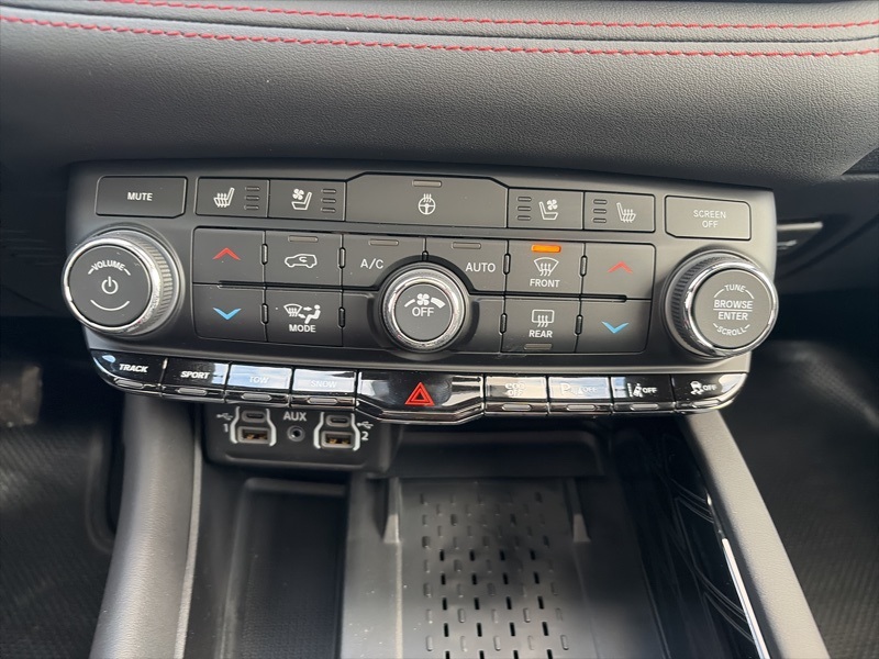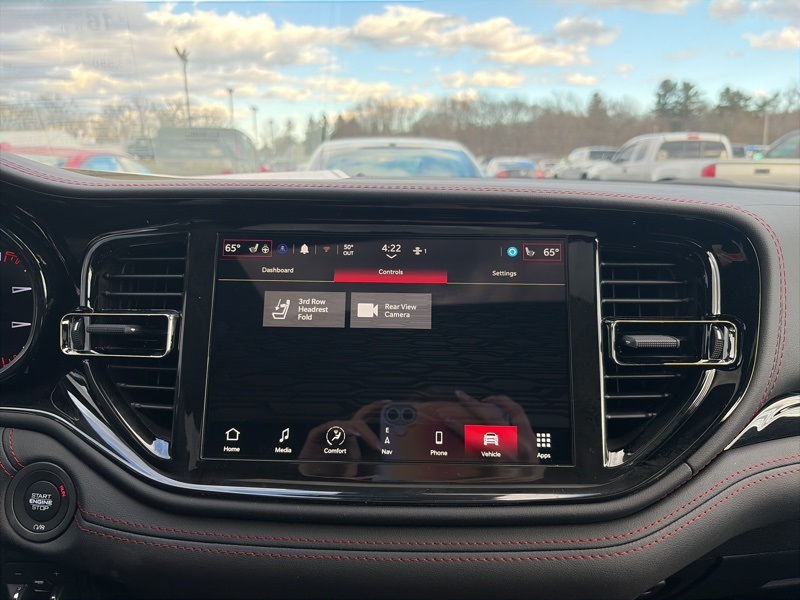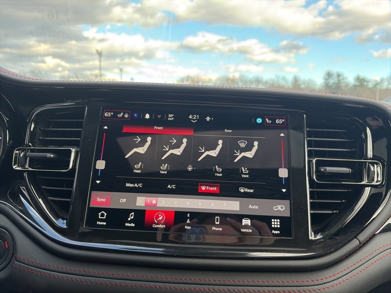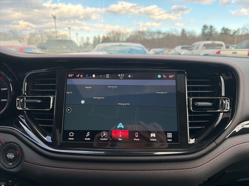 Power is sent through AWD with a 3.09 rear axle ratio, supported by four wheel independent suspension, electronic stability control, traction control, ABS, and brake assist. Additional features include a navigation system with Uconnect 5 and a 10.1 inch touchscreen, SiriusXM with 360L, Apple CarPlay and Android Auto, ParkView rear back up camera, power liftgate, heated front seats and steering wheel, front and rear climate control, rain sensing wipers, auto leveling suspension, and Dodge Connect emergency communication.