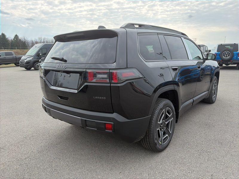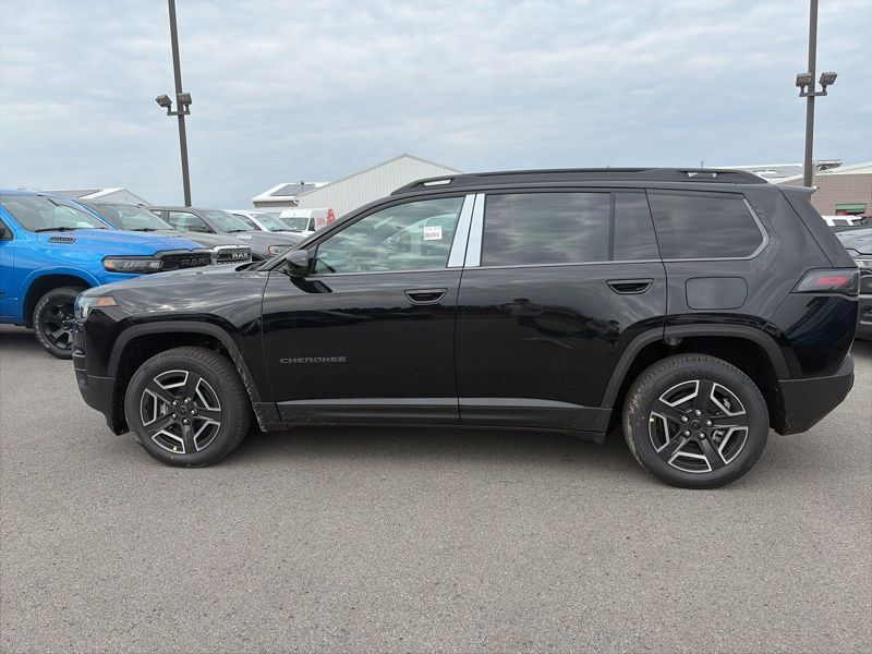 Quick Order Package 23F Laredo, 1.6L I4, 4-Wheel Disc Brakes, 4.16 Final Drive Ratio, 4G LTE Wi-Fi Hot Spot, 6 Speakers, ABS brakes, Air Conditioning, Alloy wheels, AM/FM radio: SiriusXM with 360L, Apple CarPlay, Apple CarPlay/Android Auto, Auto High-beam Headlights, Automatic temperature control, Brake assist, Compass, Delay-off headlights, Driver door bin, Driver vanity mirror, Dual front impact airbags, Dual front side impact airbags, Electronic Stability Control, Emergency communication system, Four wheel independent suspension, Front anti-roll bar, Front Bucket Seats, Front Center Armrest, Front dual zone A/C, Front fog lights, Front reading lights, Fully automatic headlights, Global Telematics Box Module (TBM), Gloss Black Mirrors, Google Android Auto, GPS Antenna Input, Heated door mirrors, Heated Exterior Mirrors, Heated front seats, Illuminated entry, Knee airbag, Low tire pressure warning, Occupant sensing airbag, Outside temperature display, Overhead airbag, Overhead console, Panic alarm, ParkView Rear Back-Up Camera, Passenger door bin, Passenger vanity mirror, Power door mirrors, Power driver seat, Power Liftgate, Power steering, Power windows, Radio data system, Radio: Uconnect 5 with 12.3" Display, Rain sensing wipers, Rear anti-roll bar, Rear reading lights, Rear seat center armrest, Rear side impact airbag, Rear window defroster, Rear window wiper, Remote keyless entry, SiriusXM with 360L, Soul Cloth Seats with Labyrinth Embossing, Speed control, Speed-sensing steering, Split folding rear seat, Spoiler, Steering wheel mounted audio controls, Tachometer, Telescoping steering wheel, Tilt steering wheel, Traction control, Trip computer, US/Canada Connectivity, Variably intermittent wipers, Voltmeter, and Wheels: 18" x 7" Machine Face Painted Aluminum. 1.6L I4. Diamond Black Crystal Pearlcoat 2026 Jeep Cherokee Laredo 4WD CVT 1.6L I4