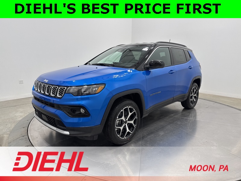 With all wheel drive capability, modern tech, and refined Jeep styling, this new Jeep Compass Limited Altitude 4x4 for sale near Pittsburgh is the perfect SUV for drivers who want it all. Visit Diehl of Moon Chrysler Jeep Dodge Ram in Moon Township PA today for the best new Jeep deals near Pittsburgh and experience the difference between getting there and arriving in style. Price includes: $1000 - 2026 National Retail Bonus Cash . Exp. 03/31/2026 $1000 - 2026 National Stellantis Loyalty Bonus Cash . Exp. 03/31/2026 $1500 - 2026 National SFS Lease Loyalty Bonus Cash . Exp. 03/31/2026 $500 - 2026 National 2026 First Responder Bonus Cash . Exp. 01/04/2027 $595 - 2026 National Select Inventory Bonus Cash. Exp. 01/04/2027