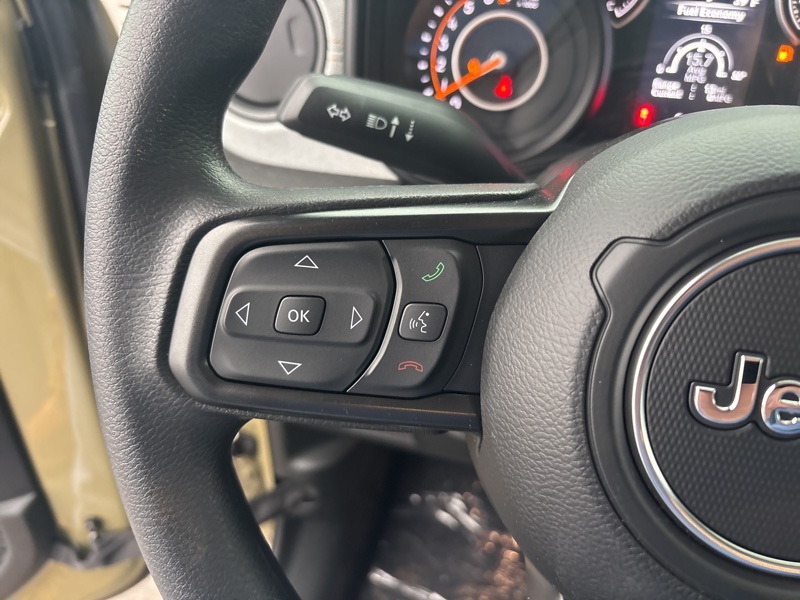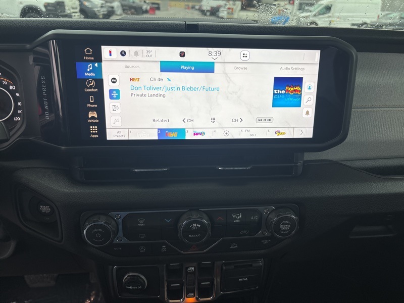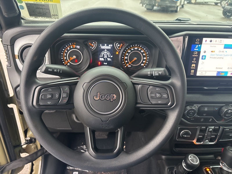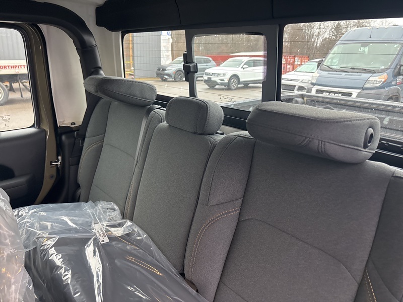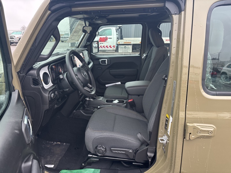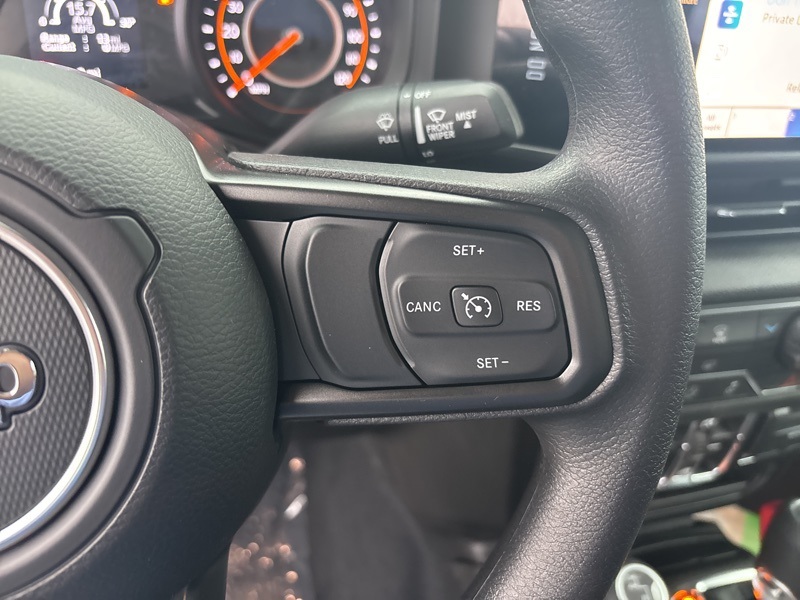 Outfitted with Quick Order Package 24B Sport, it brings a 12.3 touchscreen display with Uconnect 5, SiriusXM with 360L, Apple CarPlay and Android Auto, Alexa Built-In, an 8-speaker audio system, 4G LTE Wi-Fi Hot Spot, US/Canada connectivity, and radio data system. Open-air versatility comes from the Black 3-Piece Hard Top with Freedom Panel storage bag, rear sliding window, and rear window defroster.