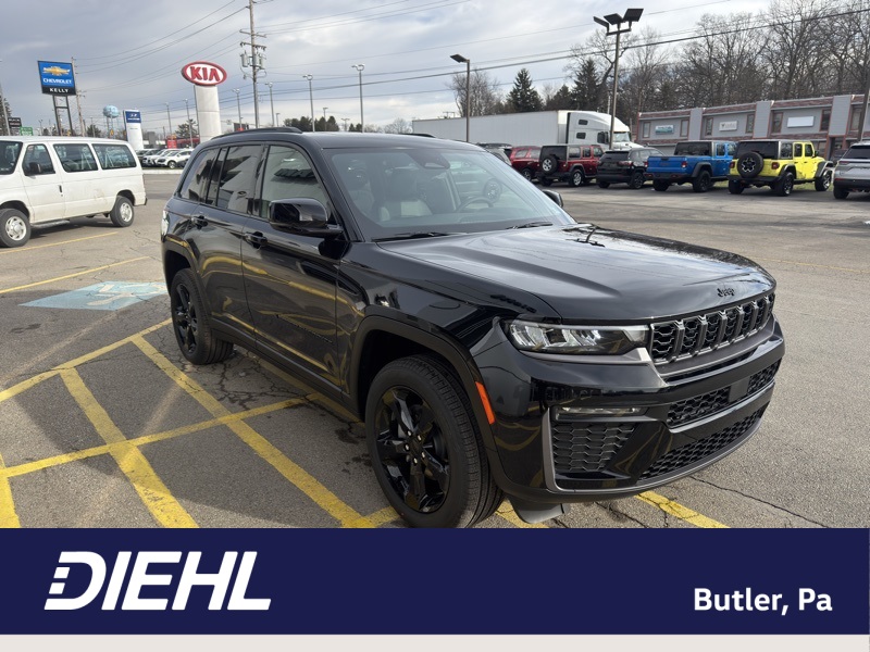 Limited Altitude Package (Delete Limited Badge, Dual-Pane Panoramic Sunroof, Exterior Accents Dark Neutral Metallic, and Wheels: 20" x 8.5" Gloss Black Painted Aluminum), Quick Order Package 2CE Limited, 4WD, 10 Speakers, 3.70 Rear Axle Ratio, 4-Wheel Disc Brakes, 4G LTE Wi-Fi Hot Spot, ABS brakes, Active Noise Control System, Air Conditioning, Alloy wheels, AM/FM radio: SiriusXM with 360L, Anti-whiplash front head restraints, Apple CarPlay, AppLink/Apple CarPlay and Android Auto, Audio memory, Auto High-beam Headlights, Automatic temperature control, Auxiliary Battery, Brake assist, Bumpers: body-color, Capri Leatherette Seats, Compass, Connectivity - US/Canada, Delay-off headlights, Disassociated Touchscreen Display, Driver door bin, Driver vanity mirror, Dual front impact airbags, Dual front side impact airbags, Electronic Stability Control, Emergency communication system, For Details, Visit DriveUconnect.com, Four wheel independent suspension, Front anti-roll bar, Front Bucket Seats, Front Center Armrest w/Storage, Front dual zone A/C, Front fog lights, Front reading lights, Fully automatic headlights, Garage door transmitter, Global Telematics Box Module (TBM), Gloss Black Exterior Mirrors, Google Android Auto, GPS Antenna Input, Heated door mirrors, Heated Exterior Mirrors, Heated front seats, Heated rear seats, Heated steering wheel, Illuminated entry, Integrated Center Stack Radio, Integrated Voice Command with Bluetooth, Knee airbag, Low tire pressure warning, Manual Folding Exterior Mirrors, Memory seat, Navigation System, Normal Duty Suspension, Occupant sensing airbag, Outside temperature display, Overhead airbag, Overhead console, Panic alarm, ParkView Rear Back-Up Camera, Passenger door bin, Passenger vanity mirror, Power door mirrors, Power driver seat, Power Liftgate, Power passenger seat, Power steering, Power windows, Radio data system, Radio: Uconnect 5 Nav with 12.3" Display, Rear anti-roll bar, Rear reading lights, Rear window defroster, Rear window wiper, Remote keyless entry, Security system, Speed control, Speed-Sensitive Wipers, Split folding rear seat, Spoiler, Steering wheel mounted audio controls, Tachometer, Telescoping steering wheel, Tilt steering wheel, Traction control, Trip computer, Turn signal indicator mirrors, USB Host Flip, Variably intermittent wipers, Voltmeter, and Wheels: 18" x 8.0" Polished/Painted AluminuM. 4WD. Recent Arrival! Diamond Black Crystal Pearlcoat 2026 Jeep Grand Cherokee Limited 4WD 8-Speed Automatic 2.0L I4 PDI Turbocharged DOHC 16V LEV3-SULEV30 324hp
