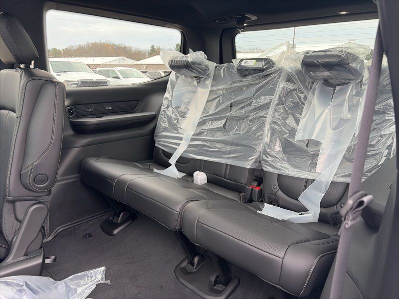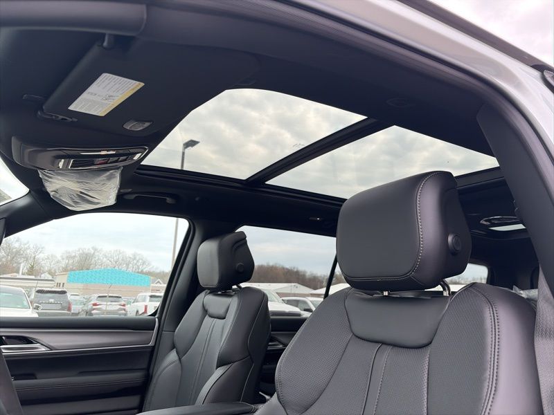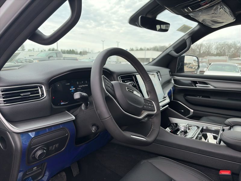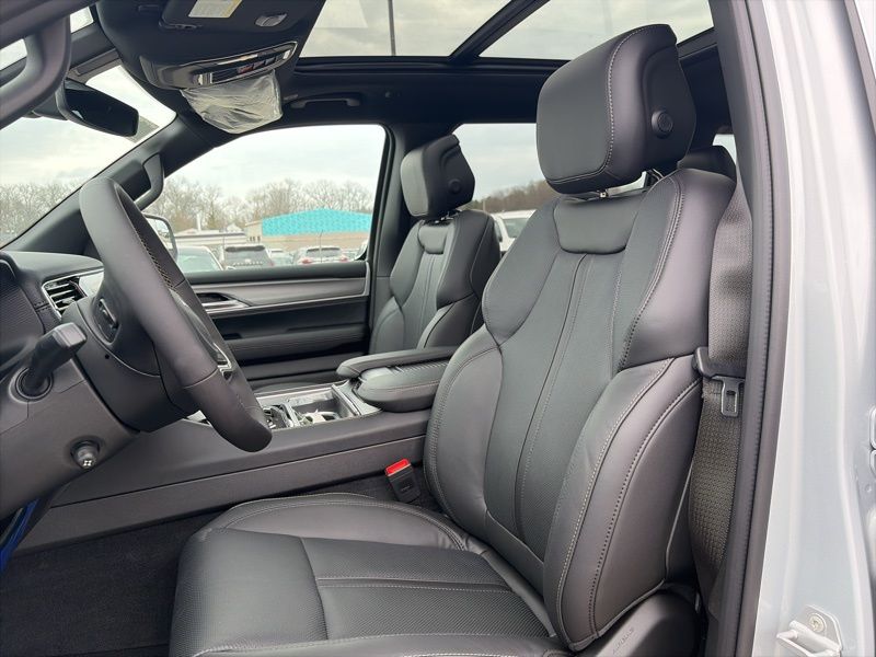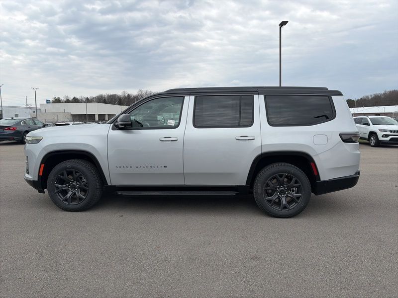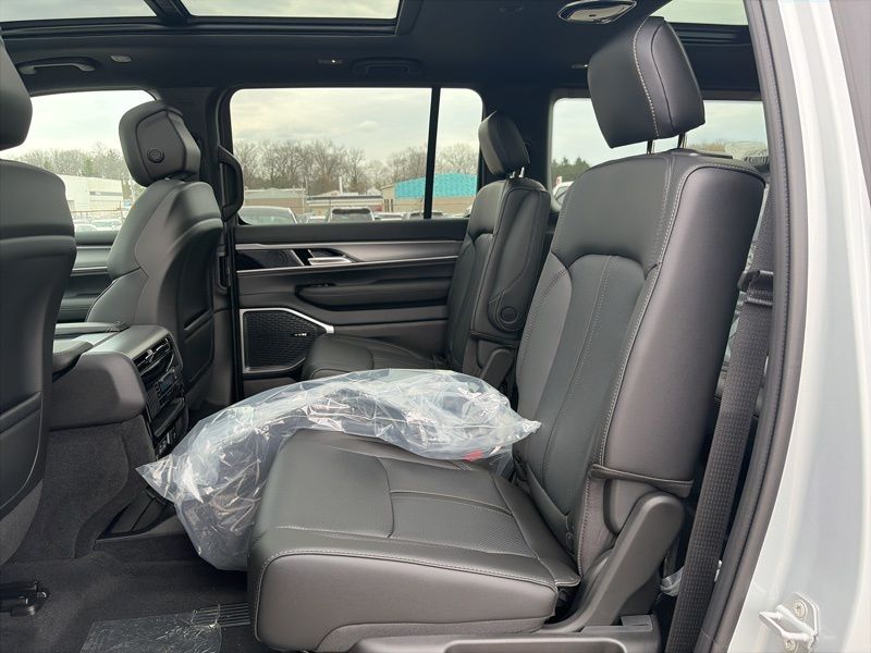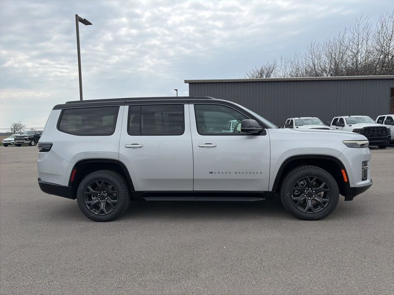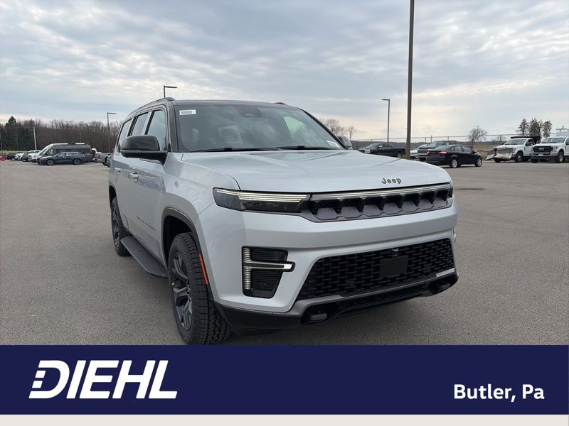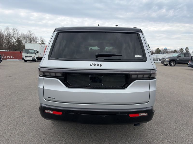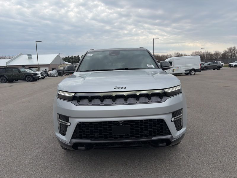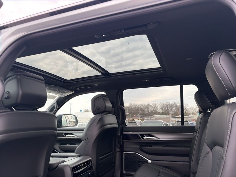 Quick Order Package 29V Upland (118 Mph Maximum Speed Calibration, 3 Panel Sunroof, 3rd Row 60/40 Power Recline Seat, Adjustable Roof Rail Crossbars, All-Season Floor Mats, Auto Adjust in Reverse Exterior Mirrors, Auto Power Folding Exterior Mirrors, Auto Power Folding Mirrors, Auto-Dimming Exterior Driver Mirror, Black Exterior Accents, Blind Spot with Trailer Detection, Cargo Cover, Cargo Tray, Electronic Rear Limited Slip Differential, Exterior Mirrors Approach Lamps, Exterior Mirrors with Memory, Exterior Mirrors with Supplemental Signals, Fuel Tank Skid Plate Shield, Heated Exterior Mirrors, Interior Rear Facing Camera, Locking in-Vehicle Safe, P and P Park and Unpark Assist with Stop System, Quadra-Lift Air Suspension, Removable Rear Tow Hooks, Selec-Speed Control, Semi Active Damping, Side Distance Warning, Surround View Camera System, Titanium Daylight Opening Upper, Titanium Upper Grille Applique, Trailer Brake Control, Trailer Hitch Zoom, Trailer Light Monitoring, Trailer Tire Pressure Monitoring System, Vapor Tow Hooks, and Wheels: 20" x 9" Aluminum Painted), Two Tone Paint Group, Upland Package, 3rd row seats: bench, 4-Wheel Disc Brakes, 9 Speakers, ABS brakes, Air Conditioning, Alloy wheels, AM/FM radio: SiriusXM with 360L, Anti-whiplash front head restraints, Apple CarPlay/Android Auto, Audio memory, Auto High-beam Headlights, Auto-dimming door mirrors, Auto-dimming Rear-View mirror, Auto-leveling suspension, Automatic temperature control, Brake assist, Bumpers: body-color, Compass, Delay-off headlights, Driver door bin, Driver vanity mirror, Driver's Seat Mounted Armrest, Dual front impact airbags, Dual front side impact airbags, Electronic Stability Control, Emergency communication system: Jeep Connect, Exterior Parking Camera Rear, Four wheel independent suspension, Front anti-roll bar, Front Bucket Seats, Front Center Armrest w/Storage, Front dual zone A/C, Front fog lights, Front reading lights, Fully automatic headlights, Garage door transmitter, Heated door mirrors, Heated front seats, Heated steering wheel, Illuminated entry, Knee airbag, Low tire pressure warning, Memory seat, Navigation System, Normal Duty Suspension, Occupant sensing airbag, Outside temperature display, Overhead airbag, Overhead console, Panic alarm, Passenger door bin, Passenger seat mounted armrest, Passenger vanity mirror, Power door mirrors, Power driver seat, Power Liftgate, Power passenger seat, Power steering, Power windows, Radio data system, Radio: Uconnect 5 Nav with 12.0" Display, Rain sensing wipers, Rear air conditioning, Rear anti-roll bar, Rear reading lights, Rear seat center armrest, Rear window defroster, Rear window wiper, Reclining 3rd row seat, Remote keyless entry, Security system, Speed control, Speed-sensing steering, Speed-Sensitive Wipers, Split folding rear seat, Steering wheel memory, Steering wheel mounted audio controls, Tachometer, Telescoping steering wheel, Tilt steering wheel, Traction control, Trip computer, Turn signal indicator mirrors, Variably intermittent wipers, Ventilated front seats, Voltmeter, and Wheels: 20" x 9" Machine Face Painted Aluminum. Silver Zynith 2026 Jeep Grand Wagoneer Upland 4WD 8-Speed Automatic 3.0L I6