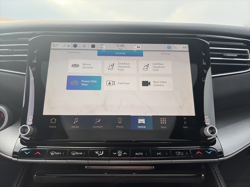 Technology is centered around the Uconnect 5 navigation system with a 12.0 inch display, SiriusXM with 360L, Apple CarPlay and Android Auto, and an exterior parking camera rear. Rain sensing wipers, auto high beam headlights, auto dimming mirrors, and speed sensitive steering enhance daily driving confidence.