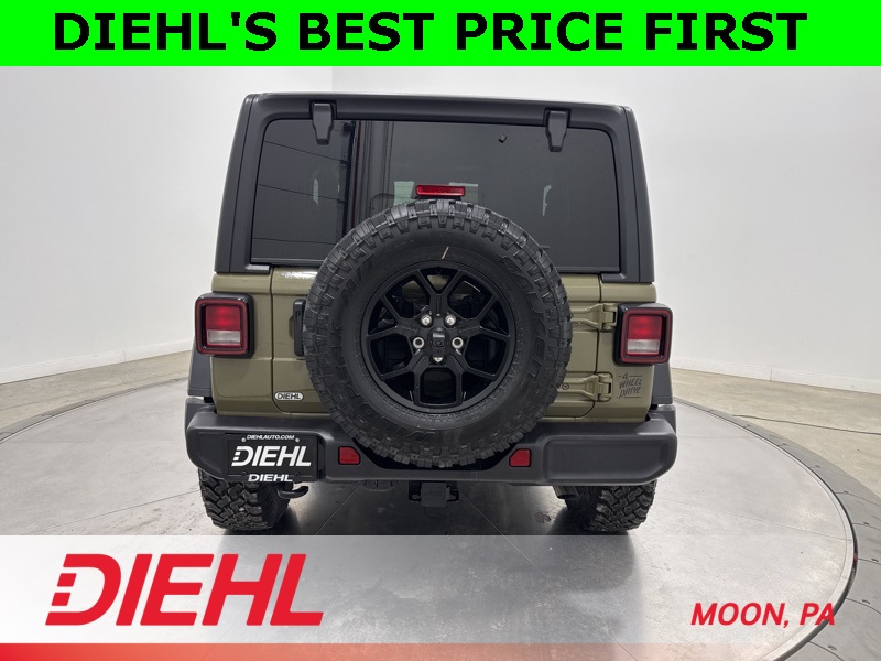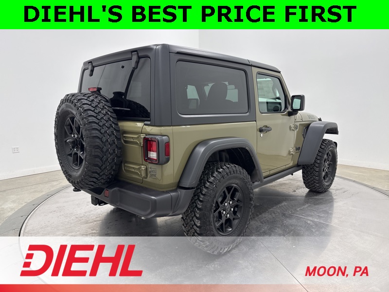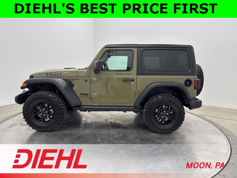 2-Door Passive Entry, Front Door Locks, 4-Wheel Drive Swing Gate Decal, 4.10 Rear Axle Ratio, 7 and 4 Pin Wiring Harness, Advanced Brake Assist, Air Conditioning with Auto Temp Control, Air Filtering, Automatic Headlamps, Auxiliary Switches, Black Grille with Gloss Black Rings, Class II Receiver Hitch, Cluster 7.0" TFT Color Display, Convenience Group, Conventional Differential Front Axle, Corning Gorilla Glass, Dana M210 Wide HD Tube Front Axle, Dana M220 Wide Rear Axle, Daytime Running Lamps LED Accents, Deep Tint Sunscreen Windows, E-Locker Rear Axle, Emergency/Assistance Call, Enhanced Adaptive Cruise Control, Front LED Fog Lamps, Full Speed Forward Collision Warning Plus, Heated Front Seats, Heated Steering Wheel, Injection Molded Black Rear Bumper, LED Premium Reflector Headlamps, Mold in Color Bumper with Gloss Black, Molded in Color Rubicon Highline Flare, MOPAR All-Weather Floor Mats, Off-Road Plus Mode, Power Dome Dual Vented Hood, Power Heated Mirrors, Premium Wrapped Steering Wheel, Quick Order Package 22W Willys, Security Alarm, Steel Power Dome Hood Package, Sun Visors with Illuminated Vanity Mirrors, Universal Garage Door Opener, Wheels: 17" x 7.5" Painted Black, Willy's Suspension, Willys Hood Decal. Price includes: $1000 - 2026 National Select Inventory Bonus Cash . Exp. 01/04/2027 $1500 - 2026 National Stellantis Loyalty Retail Bonus Cash . Exp. 02/02/2026 $500 - 2026 National 2026 First Responder Bonus Cash . Exp. 01/04/2027 $1,500 - Exp. 02/02/2026