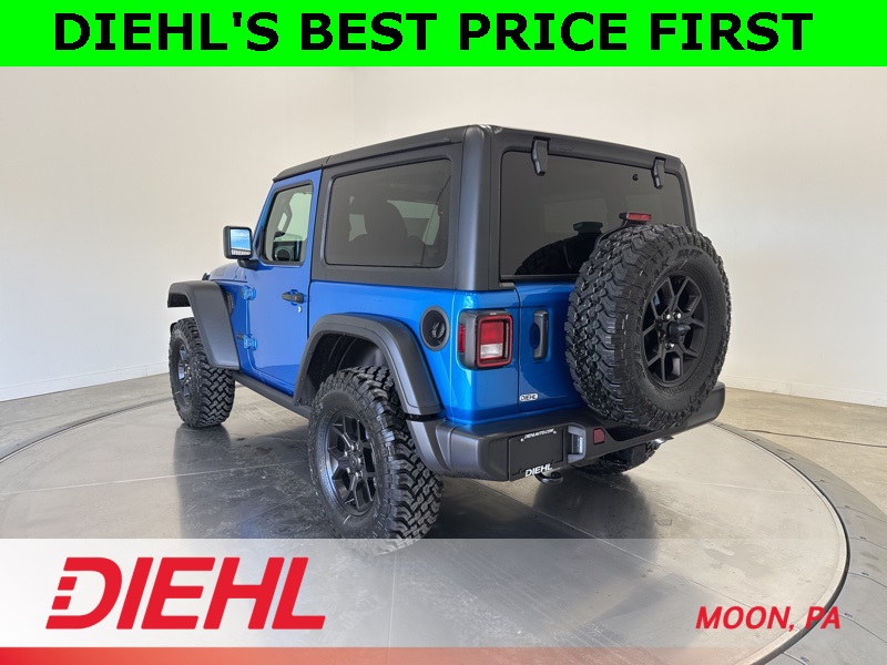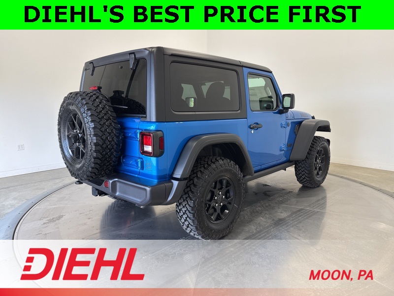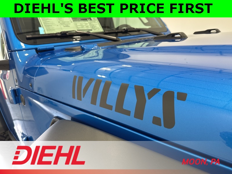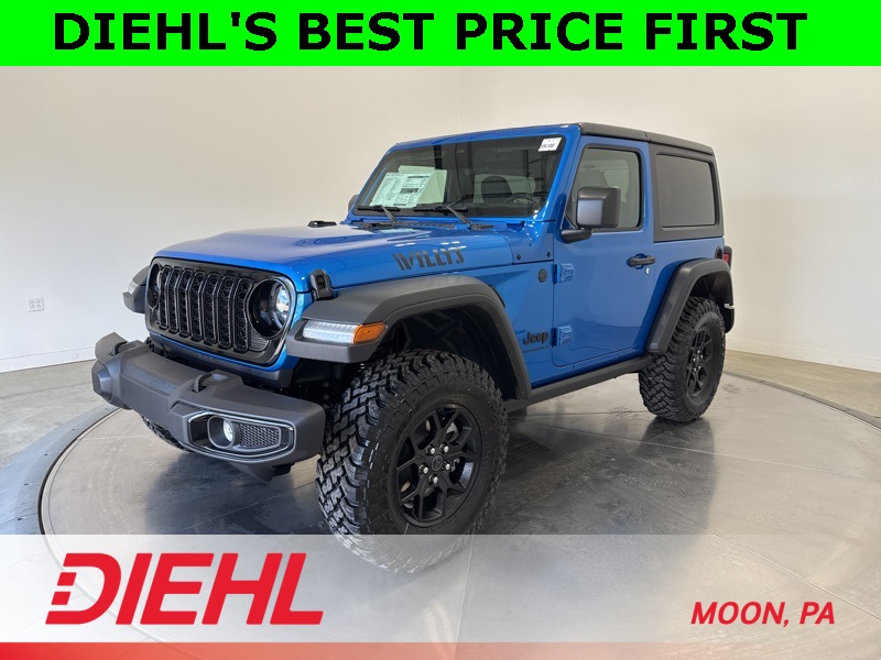 With advanced safety features like Blind Spot Monitoring, Adaptive Cruise Control, and ParkSense Rear Park Assist, this Wrangler makes exploration both thrilling and secure. Whether you are cruising through Moon Township or carving up the trails in Western PA, this new Jeep Wrangler Willys for sale near Pittsburgh is the perfect balance of rugged capability and everyday comfort. Visit Diehl of Moon Chrysler Jeep Dodge Ram in Moon Township PA today for the best new Jeep deals near Pittsburgh and make every drive an adventure. Price includes: $1000 - 2026 National Select Inventory Bonus Cash . Exp. 01/04/2027 $1000 - 2026 National Stellantis Loyalty Bonus Cash . Exp. 03/31/2026 $500 - 2026 National 2026 First Responder Bonus Cash . Exp. 01/04/2027