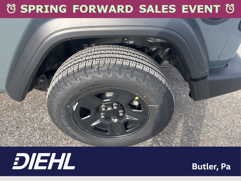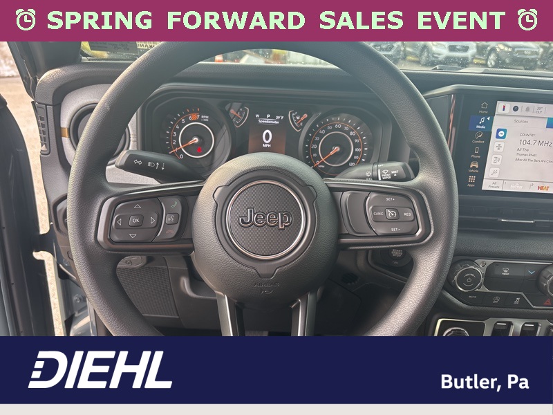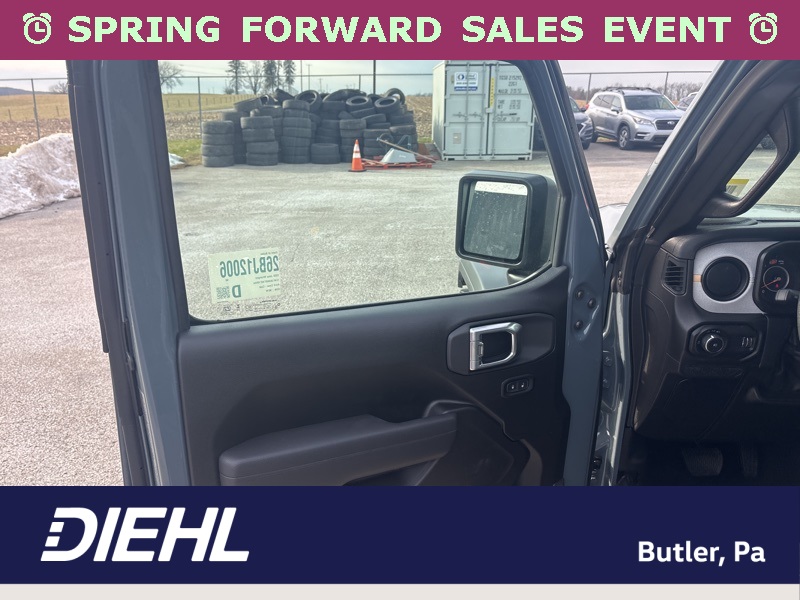This Wrangler Sport offers open air Jeep style, modern connectivity, and everyday usability in a rugged Anvil finish.