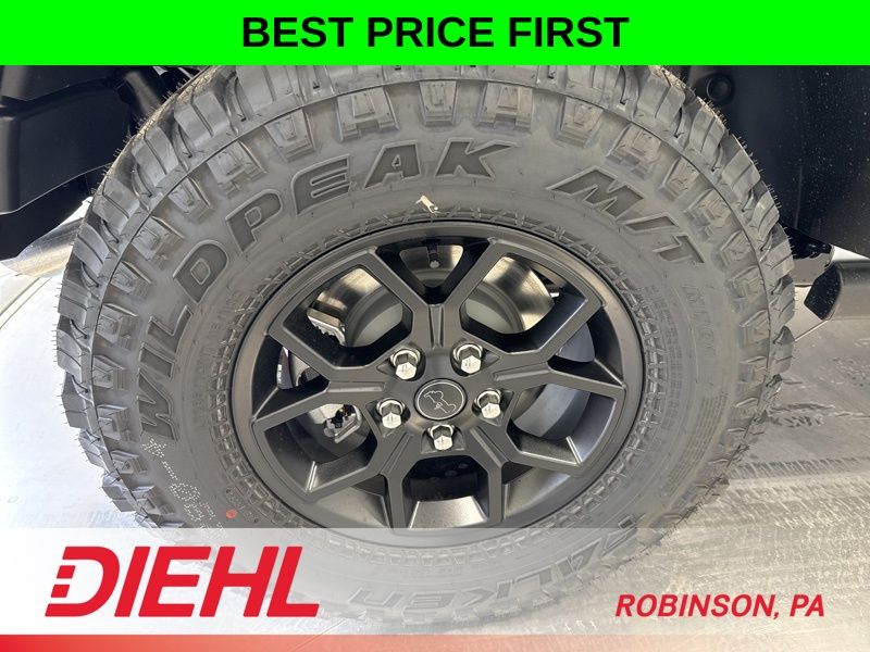 The Willys package brings serious attitude and capability with mud terrain tires, blacked out wheels, rock protection, LED lighting, and signature Willys styling that makes it clear this is not your average Wrangler. It looks like it belongs on a mountain… because it does.
