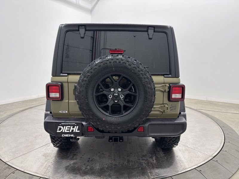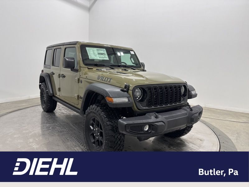 Convenience Group (2-Door Passive Entry, Front Door Locks, Air Conditioning with Auto Temp Control, Air Filtering, Cluster 7.0" TFT Color Display, Emergency/Assistance Call, Heated Front Seats, Heated Steering Wheel, and Universal Garage Door Opener), Dual Top Group (Premium Black Sunrider Soft Top with Dual Top Group), Quick Order Package 24W Willys (4-Wheel Drive Swing Gate Decal, 7 and 4 Pin Wiring Harness, Advanced Brake Assist, Automatic Headlamps, Auxiliary Switches, Black Grille with Gloss Black Rings, Class II Receiver Hitch, Conventional Differential Front Axle, Corning Gorilla Glass, Dana M210 Wide HD Tube Front Axle, Dana M220 Wide Rear Axle, Daytime Running Lamps LED Accents, Deep Tint Sunscreen Windows, E-Locker Rear Axle, Enhanced Adaptive Cruise Control, Front LED Fog Lamps, Full Speed Forward Collision Warning Plus, Increased Travel Export Tuned Suspension, Injection Molded Black Rear Bumper, LED Premium Reflector Headlamps, Mold in Color Bumper with Gloss Black, Molded in Color Rubicon Highline Flare, MOPAR All-Weather Floor Mats, Off-Road Plus Mode, Power Heated Mirrors, Premium Wrapped Steering Wheel, Security Alarm, Sun Visors with Illuminated Vanity Mirrors, Wheels: 17" x 7.5" Painted Black, and Willys Hood Decal), Steel Power Dome Hood Package (Power Dome Dual Vented Hood), 12.3" Touchscreen Display, 4-Wheel Disc Brakes, 4G LTE Wi-Fi Hot Spot, 8 Speakers, ABS brakes, Air Conditioning, AM/FM radio: SiriusXM with 360L, Apple CarPlay, Apple CarPlay/Android Auto, Aux Battery, Black 3-Piece Hard Top, Brake assist, Compass, Connectivity - US/Canada, Delay-off headlights, Driver door bin, Driver vanity mirror, Dual front impact airbags, Dual front side impact airbags, Electronic Stability Control, For More Info, Call 800-643-2112, Freedom Panel Storage Bag, Front anti-roll bar, Front Bucket Seats, Front Center Armrest w/Storage, Front fog lights, Front reading lights, Google Android Auto, Illuminated entry, Integrated Center Stack Radio, Integrated roll-over protection, Jeep Trail Rated Kit, Low tire pressure warning, No Soft Top, Non-Lock Fuel Cap Without Discriminator, Normal Duty Suspension, Occupant sensing airbag, Outside temperature display, Overhead airbag, Panic alarm, ParkView Rear Back-Up Camera, Passenger door bin, Passenger vanity mirror, Power steering, Power windows, Radio data system, Radio: Uconnect 5 with 12.3" Display, Rear anti-roll bar, Rear reading lights, Rear Window Defroster, Rear Window Wiper/Washer, Remote keyless entry, SiriusXM Radio Service, SiriusXM with 360L, Speed control, Split folding rear seat, Steering wheel mounted audio controls, Stop-Start Dual Battery System, Tachometer, Telescoping steering wheel, Tilt steering wheel, Traction control, Trip computer, Variably intermittent wipers, and Wheels: 17" x 7.5" Black Steel Styled. Recent Arrival! 41 2026 Jeep Wrangler Willys 4WD 8-Speed Automatic 3.6L V6 24V VVT