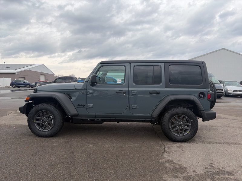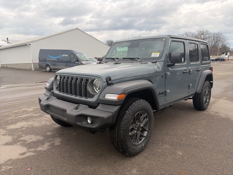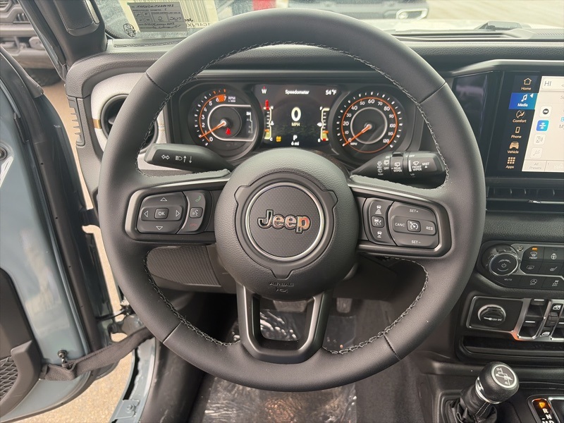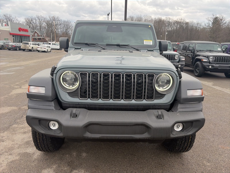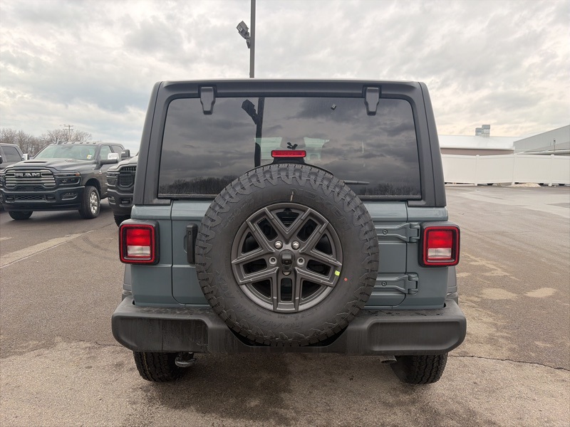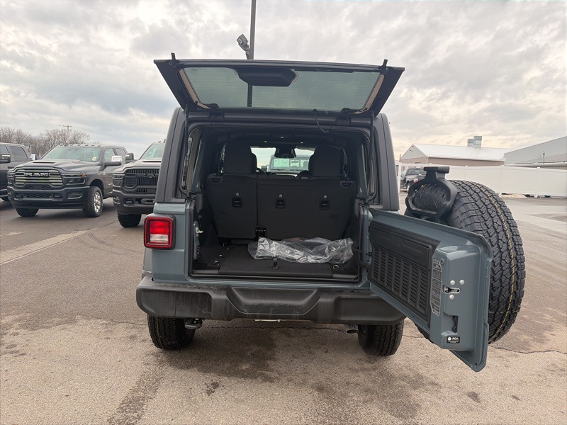 Convenience Group (2-Door Passive Entry, Front Door Locks, Air Conditioning with Auto Temp Control, Air Filtering, Cluster 7.0" TFT Color Display, Emergency/Assistance Call, Heated Front Seats, Heated Steering Wheel, and Universal Garage Door Opener), LED Headlamp and Fog Lamp Group (Front LED Fog Lamps and LED Premium Reflector Headlamps), Quick Order Package 22S Sport S (Advanced Brake Assist, Automatic Headlamps, Corning Gorilla Glass, Deep Tint Sunscreen Windows, Enhanced Adaptive Cruise Control, Full Speed Forward Collision Warning Plus, Power Heated Mirrors, Premium Wrapped Steering Wheel, Security Alarm, Sun Visors with Illuminated Vanity Mirrors, and Wheels: 17" x 7.5" Gray), 12.3" Touchscreen Display, 3.45 Overall Top Gear Ratio, 4-Wheel Disc Brakes, 4G LTE Wi-Fi Hot Spot, 8 Speakers, ABS brakes, Air Conditioning, AM/FM radio: SiriusXM with 360L, Apple CarPlay, Apple CarPlay/Android Auto, Aux Battery, Black 3-Piece Hard Top, Brake assist, Compass, Connectivity - US/Canada, Delay-off headlights, Driver door bin, Driver vanity mirror, Dual front impact airbags, Dual front side impact airbags, Electronic Stability Control, For More Info, Call 800-643-2112, Freedom Panel Storage Bag, Front anti-roll bar, Front Bucket Seats, Front Center Armrest w/Storage, Front fog lights, Front reading lights, Google Android Auto, Illuminated entry, Integrated Center Stack Radio, Integrated roll-over protection, Low tire pressure warning, MOPAR All-Weather Floor Mats, No Soft Top, Non-Lock Fuel Cap Without Discriminator, Normal Duty Suspension, Occupant sensing airbag, Outside temperature display, Overhead airbag, Panic alarm, ParkView Rear Back-Up Camera, Passenger door bin, Passenger vanity mirror, Power steering, Power windows, Radio data system, Radio: Uconnect 5 with 12.3" Display, Rear anti-roll bar, Rear reading lights, Rear Window Defroster, Rear Window Wiper/Washer, Remote keyless entry, SiriusXM Radio Service, SiriusXM with 360L, Speed control, Split folding rear seat, Steering wheel mounted audio controls, Stop-Start Dual Battery System, Tachometer, Telescoping steering wheel, Tilt steering wheel, Traction control, Trip computer, Variably intermittent wipers, and Wheels: 17" x 7.5" Black Steel Styled. Anvil Clear Coat 2026 Jeep Wrangler Sport S 4WD 8-Speed Automatic 2.0L I4 DOHC