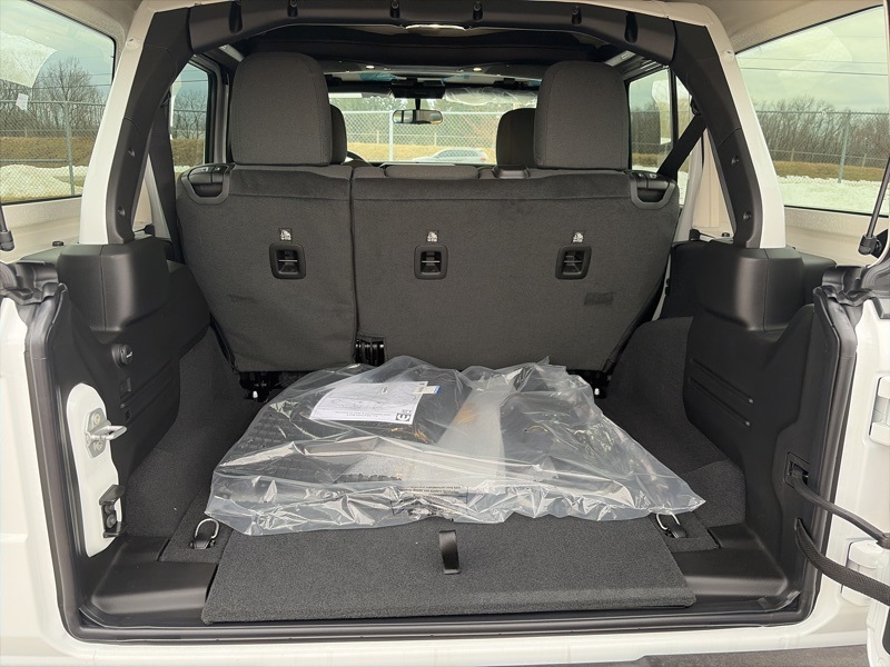 Equipped with Quick Order Package 22B Sport, this Wrangler includes a 12.3 inch touchscreen display with Uconnect 5, Apple CarPlay, Android Auto, Google Android Auto, SiriusXM with 360L, SiriusXM radio service, and a 4G LTE Wi Fi hot spot. An 8 speaker audio system, steering wheel mounted audio controls, compass, tachometer, and trip computer keep key functions easily accessible.