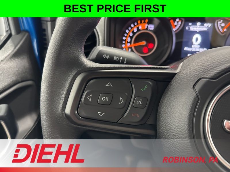 Inside, you get the best of both worlds. The Uconnect 5 system with a large touchscreen, Apple CarPlay, Android Auto, and Bluetooth keeps everything connected and easy to use. Steering wheel audio controls, push button start, and a clean digital display make every drive feel modern, even if you are covered in mud five minutes later.