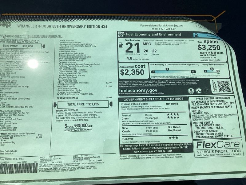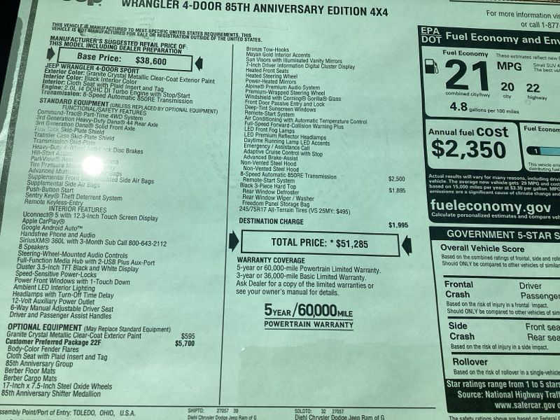 Granite Crystal Metallic Clearcoat 2026 Wrangler Jeep 4D Sport Utility 4WD 8-Speed Automatic 2.0L I4 DOHC Price includes: $1000 - 2026 National Retail Bonus Cash . Exp. 04/30/2026 $1000 - 2026 National Stellantis Loyalty Bonus Cash . Exp. 04/30/2026 $500 - 2026 National 2026 First Responder Bonus Cash . Exp. 01/04/2027