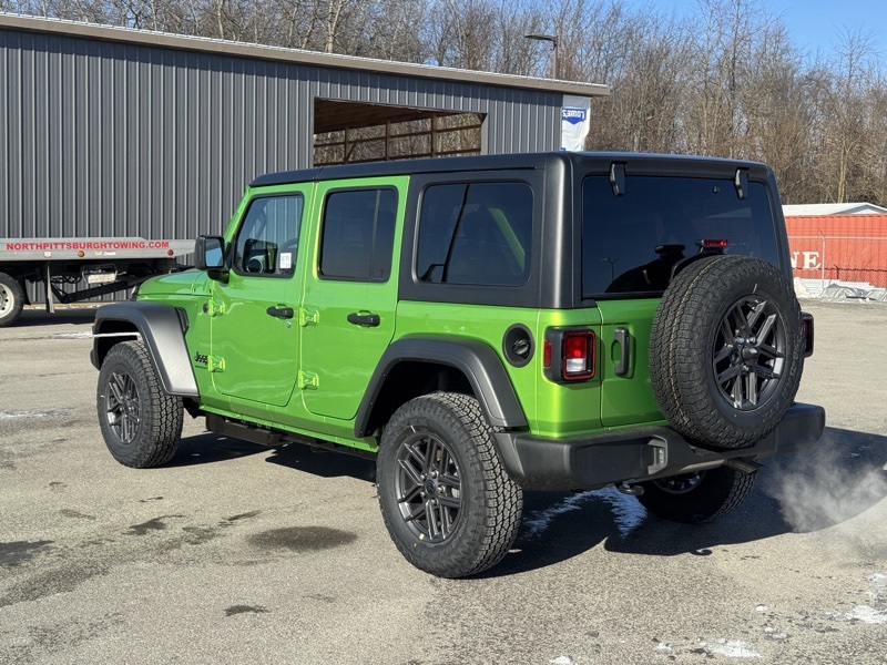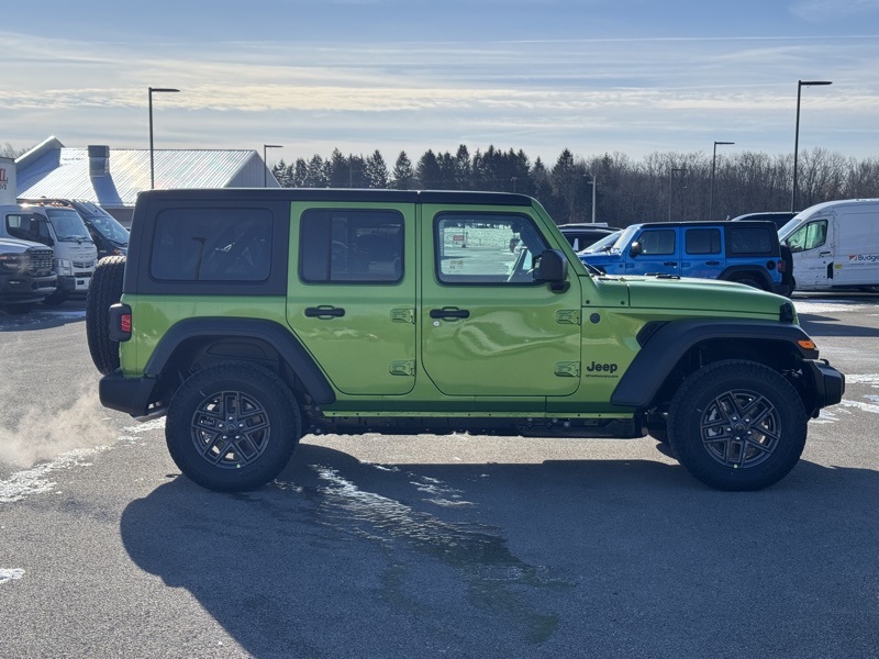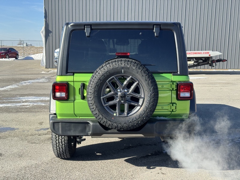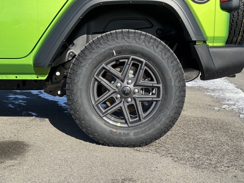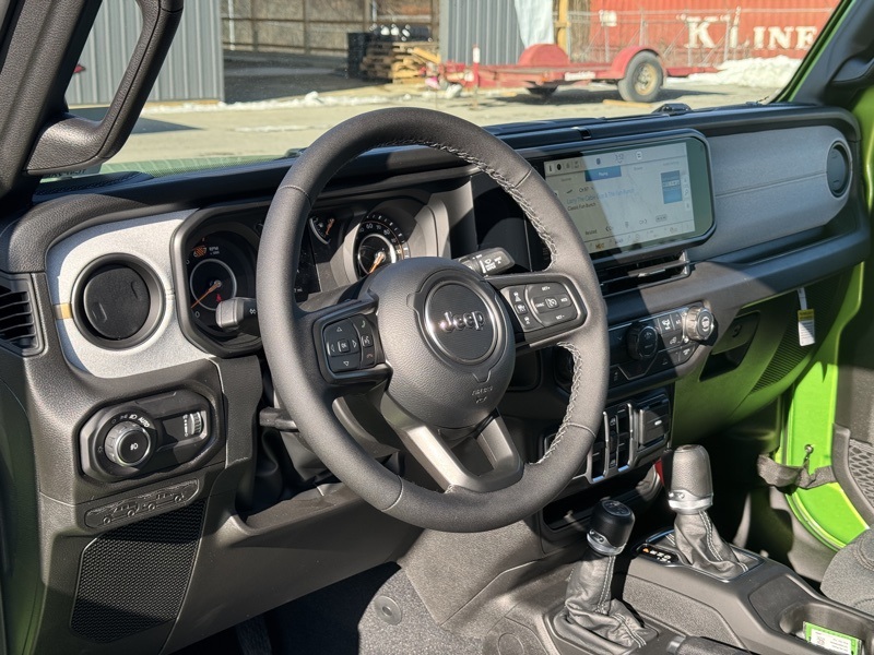 Quick Order Package 22S Sport S (Advanced Brake Assist, Automatic Headlamps, Corning Gorilla Glass, Deep Tint Sunscreen Windows, Enhanced Adaptive Cruise Control, Full Speed Forward Collision Warning Plus, Power Heated Mirrors, Premium Wrapped Steering Wheel, Security Alarm, Sun Visors with Illuminated Vanity Mirrors, and Wheels: 17" x 7.5" Gray), 12.3" Touchscreen Display, 3.45 Overall Top Gear Ratio, 4-Wheel Disc Brakes, 4G LTE Wi-Fi Hot Spot, 8 Speakers, ABS brakes, Air Conditioning, AM/FM radio: SiriusXM with 360L, Apple CarPlay, Apple CarPlay/Android Auto, Aux Battery, Black 3-Piece Hard Top, Brake assist, Compass, Connectivity - US/Canada, Delay-off headlights, Driver door bin, Driver vanity mirror, Dual front impact airbags, Dual front side impact airbags, Electronic Stability Control, For More Info, Call 800-643-2112, Freedom Panel Storage Bag, Front anti-roll bar, Front Bucket Seats, Front Center Armrest w/Storage, Front fog lights, Front reading lights, Google Android Auto, Illuminated entry, Integrated Center Stack Radio, Integrated roll-over protection, Low tire pressure warning, MOPAR All-Weather Floor Mats, No Soft Top, Non-Lock Fuel Cap Without Discriminator, Normal Duty Suspension, Occupant sensing airbag, Outside temperature display, Overhead airbag, Panic alarm, ParkView Rear Back-Up Camera, Passenger door bin, Passenger vanity mirror, Power steering, Power windows, Radio data system, Radio: Uconnect 5 with 12.3" Display, Rear anti-roll bar, Rear reading lights, Rear Window Defroster, Rear Window Wiper/Washer, Remote keyless entry, SiriusXM Radio Service, SiriusXM with 360L, Speed control, Split folding rear seat, Steering wheel mounted audio controls, Stop-Start Dual Battery System, Tachometer, Telescoping steering wheel, Tilt steering wheel, Traction control, Trip computer, Variably intermittent wipers, and Wheels: 17" x 7.5" Black Steel Styled. Mojito Clearcoat 2026 Jeep Wrangler Sport S 4WD 8-Speed Automatic 2.0L I4 DOHC