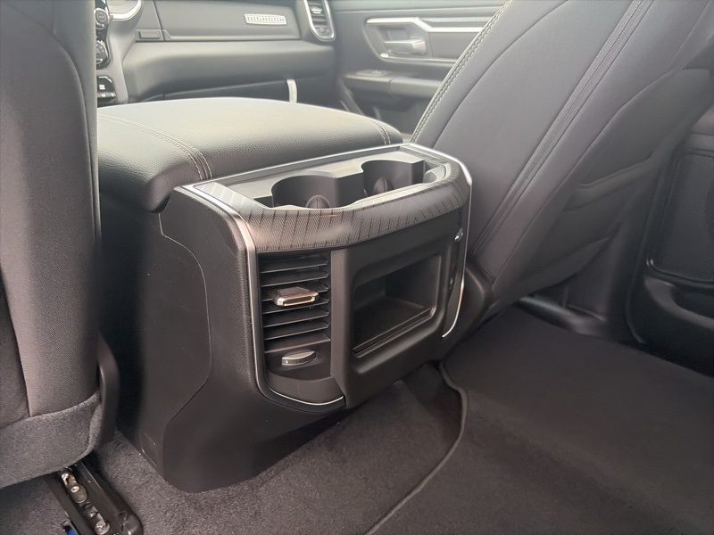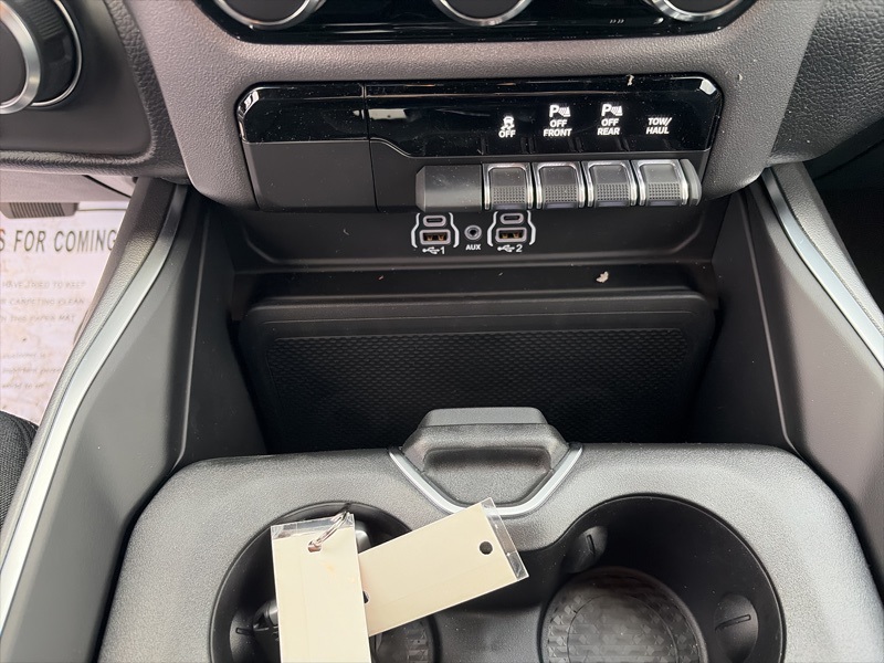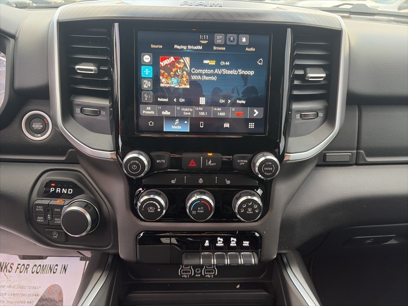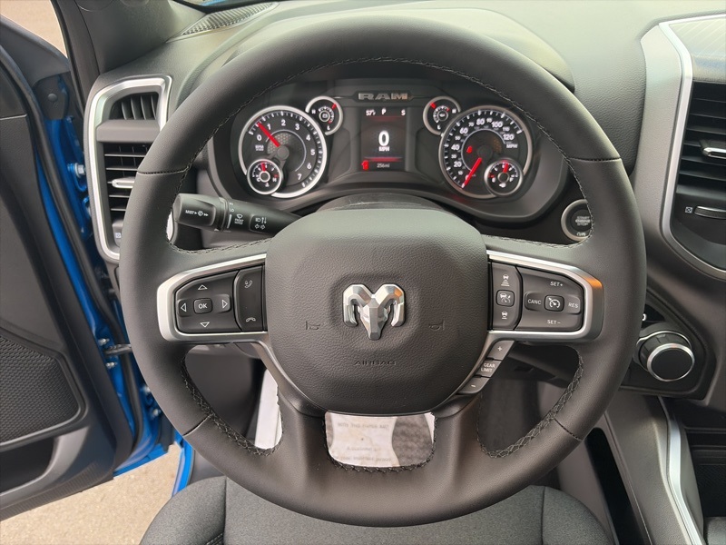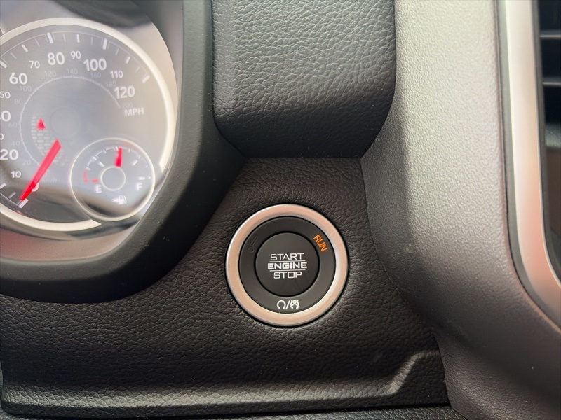 The Big Horn Level 1 Equipment Group adds everyday convenience with heated front seats, heated steering wheel, power adjustable pedals, power folding mirrors, a power sliding rear window, universal garage door opener, rear seat storage, and a full length center console. Inside, you will find deluxe cloth bucket seats, a leather wrapped steering wheel, rear 60/40 folding seat, and an easy to use Uconnect 5 system with an 8.4 inch touchscreen, Apple CarPlay, Android Auto, SiriusXM, and available 4G LTE Wi Fi hotspot capability.