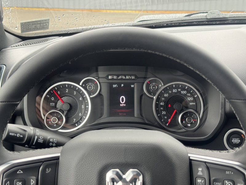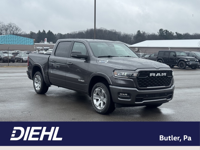 2026 Ram 1500 Big Horn/Lone Star 4WD finished in Granite Crystal Metallic Clearcoat with an 8-speed automatic transmission and 3.6L V6 24V VVT engine. Equipped with Quick Order Package 23Z Big Horn, Big Horn Level 1 Equipment Group, Bed Utility Group, and Sport Appearance Package.