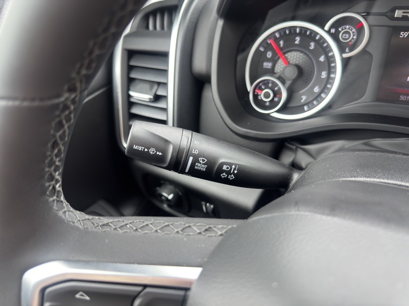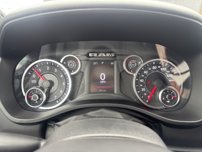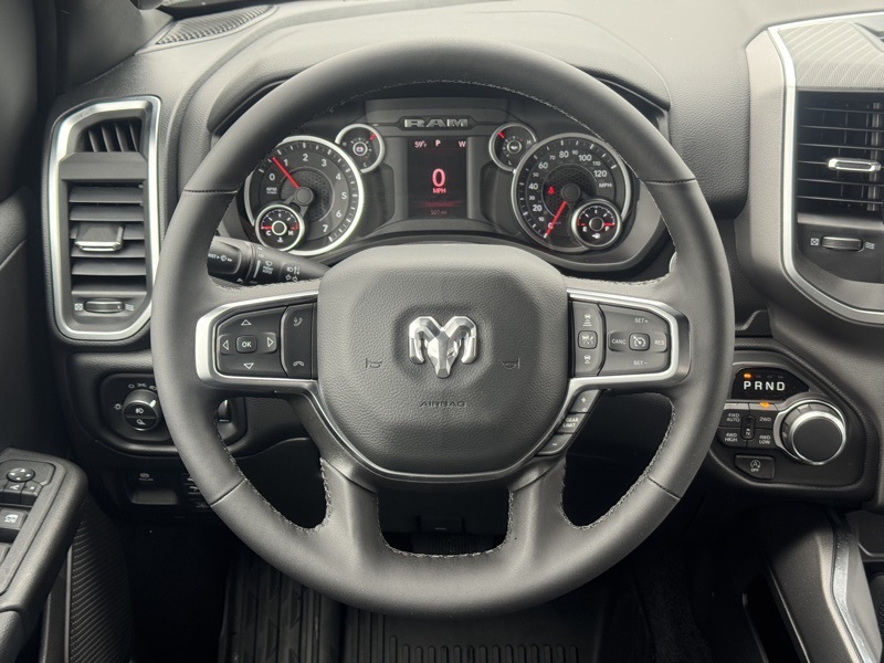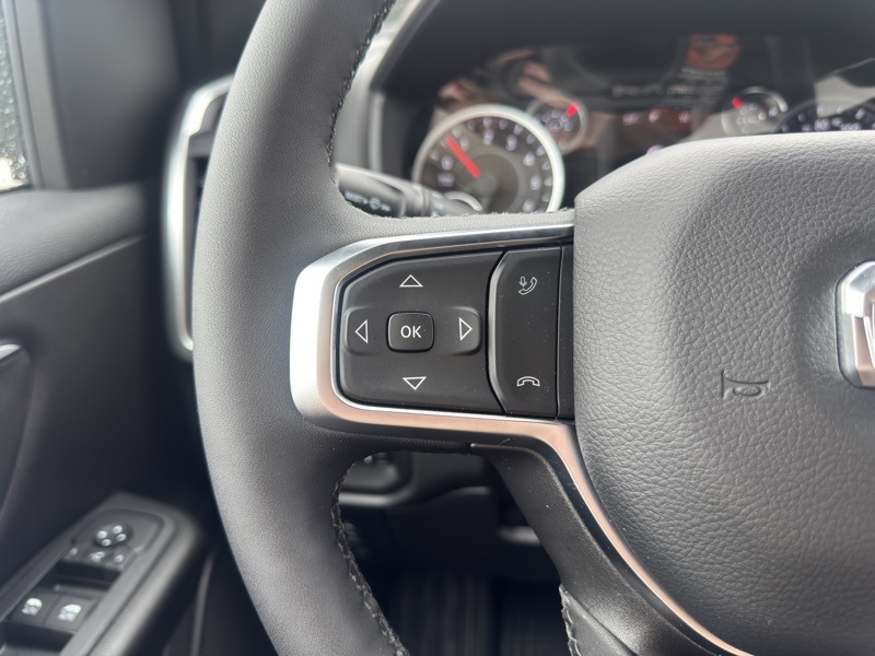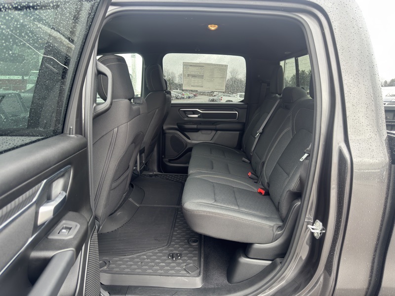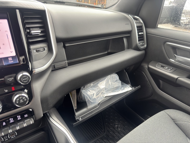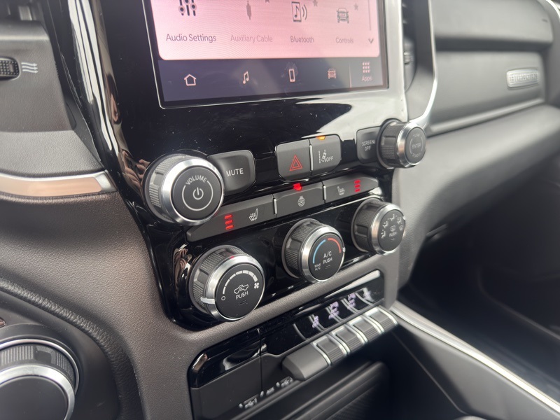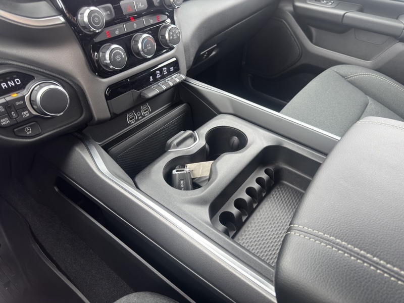 Bed Utility Group adds exterior 115V AC outlet, MOPAR adjustable cargo tie-down hooks, MOPAR spray in bedliner, and pick-up box lighting. Big Horn Level 1 Equipment Group includes heated front seats, heated steering wheel, leather wrapped steering wheel, power adjust 8-way driver seat with 2-way lumbar support, power adjustable pedals, deluxe cloth bucket seats, full length floor console, rear 60/40 folding seat with center armrest, second row in floor storage bins, rear power sliding window, rear window defroster, and MOPAR front and rear rubber floor mats.