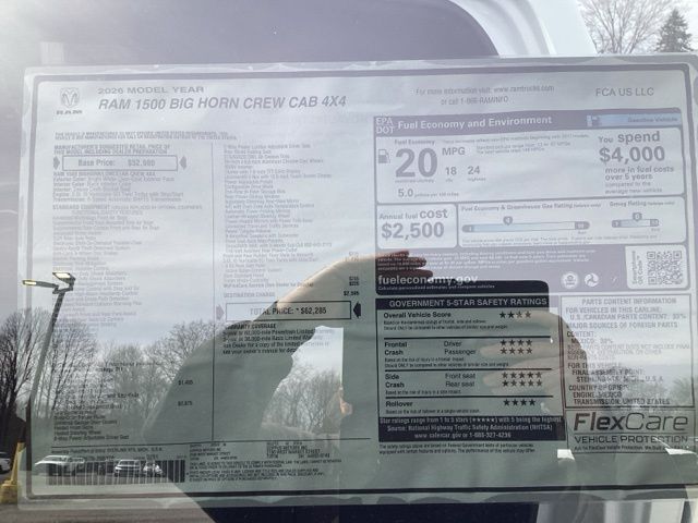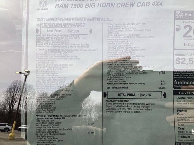 Bright White Clearcoat 2026 1500 Ram Big Horn/Lone Star 4D Crew Cab 4WD 8-Speed Automatic 3.0L I6 Price includes: $1000 - 2026 Northeast BC SFS Bonus Cash . Exp. 04/30/2026 $2000 - 2026 National SFS Lease Loyalty Bonus Cash . Exp. 04/30/2026 $3500 - 2026 National Retail Bonus Cash . Exp. 04/30/2026 $500 - 2026 National 2026 First Responder Bonus Cash . Exp. 01/04/2027