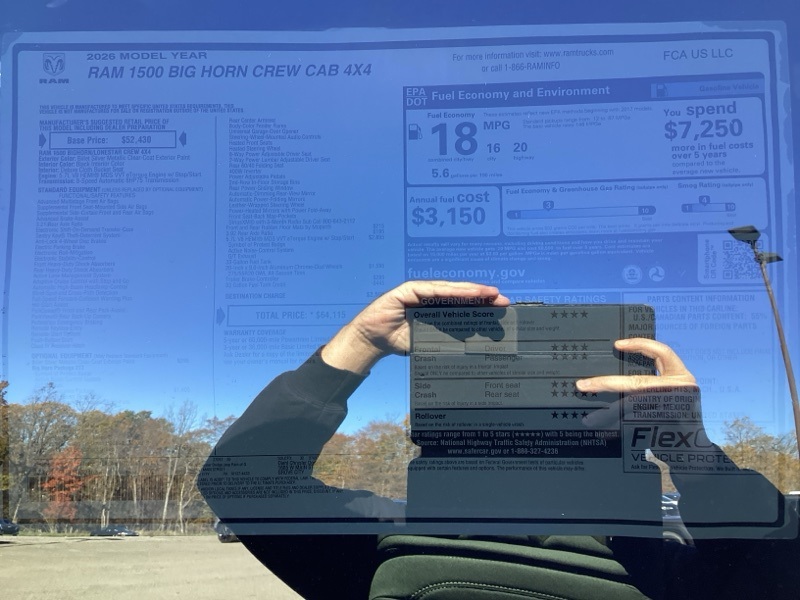 Billet Silver Metallic Clearcoat 2026 1500 Ram Big Horn/Lone Star 4D Crew Cab 4WD 8-Speed Automatic HEMI 5.7L V8 Multi Displacement VVT eTorque Price includes: $2000 - 2026 National SFS Lease Loyalty Bonus Cash . Exp. 03/31/2026 $3500 - 2026 National Retail Consumer Cash . Exp. 03/31/2026 $500 - 2026 National 2026 First Responder Bonus Cash . Exp. 01/04/2027