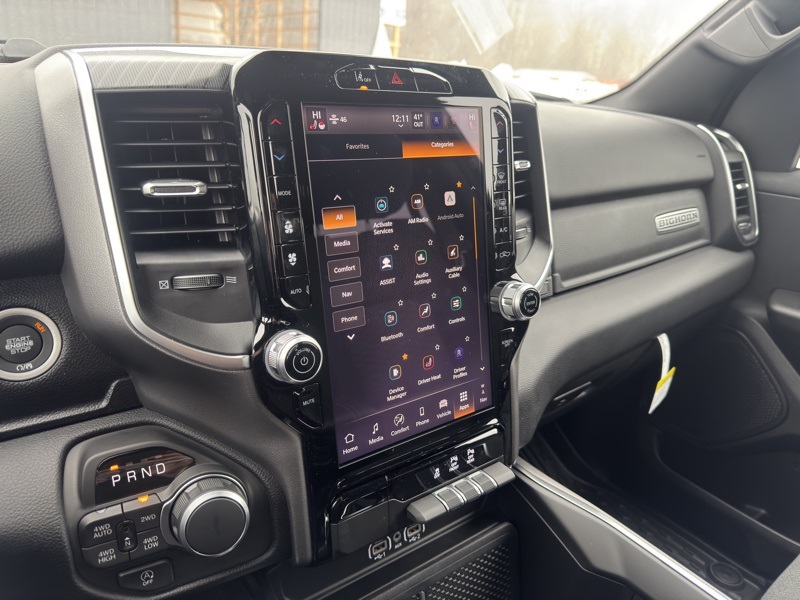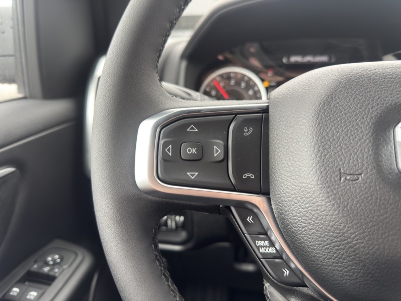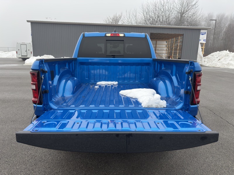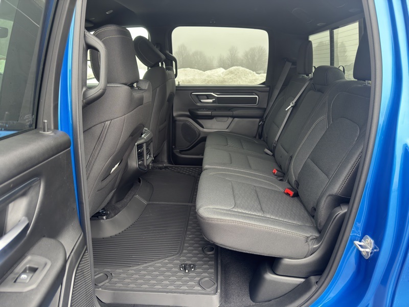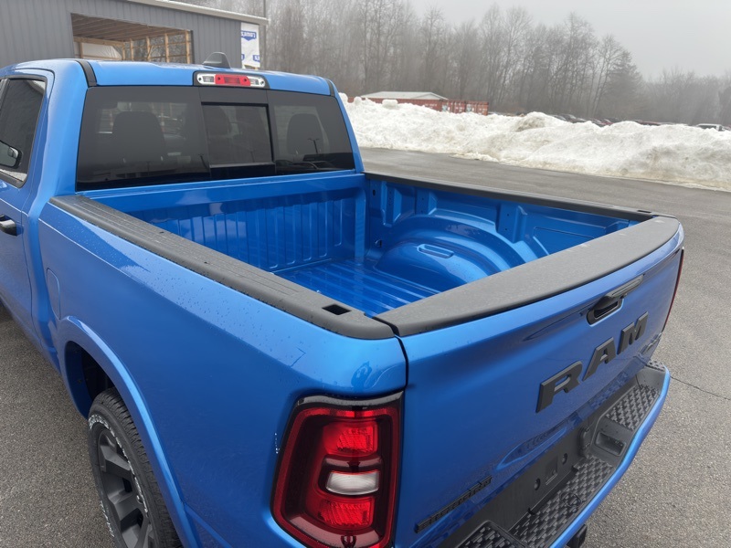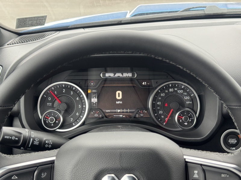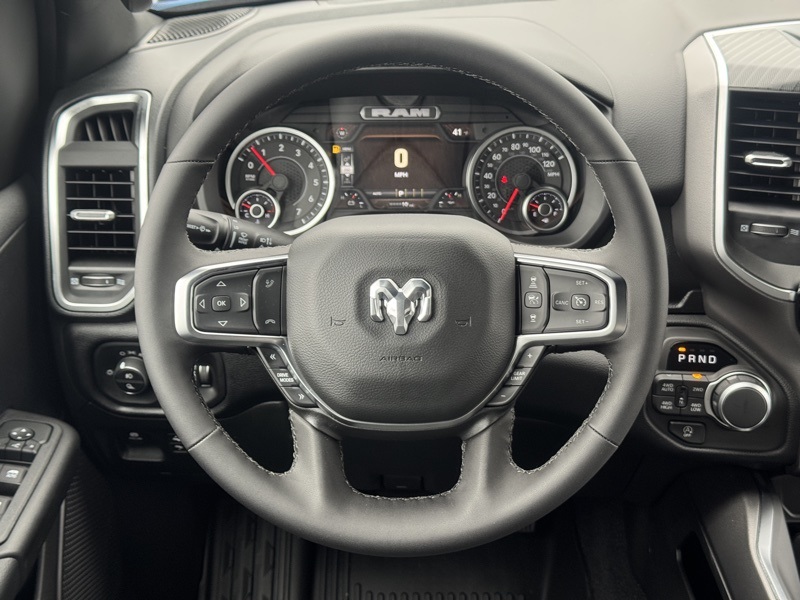 Big Horn Level 2 Equipment Group (115V Auxiliary Power Outlet, 115V Auxiliary Rear Power Outlet, 12" Touchscreen Display, 2nd Row in Floor Storage Bins, 3 Rear Seat Head Restraints, 4 Way Front Headrests, 400W Inverter, 4G LTE Wi-Fi Hot Spot, 9 Amplified Speakers with Subwoofer, Air Conditioning ATC with Dual Zone Control, Apple CarPlay, Auto Power-Folding Mirrors, Auto-Dimming Exterior Driver Mirror, Auto-Dimming Rear-View Mirror, Black Exterior Mirrors, Black Premium Power Mirrors, Body Color Fender Flares, Bucket Seats, Center Console Parts Module, Cluster 7.0" TFT Color Display, Configurable Drive Mode, Connected Travel and Traffic Services, Connectivity - US/Canada, Convex Wide-Angle Exterior Mirror Insert, Deluxe Cloth Bucket Seats, Disassociated Touchscreen Display, Exterior Mirrors Courtesy Lamps, Exterior Mirrors with Heating Element, Exterior Mirrors with Supplemental Signals, Front Seat Back Map Pockets, Full Length Floor Console, Global Telematics Box Module, Glove Box Lamp, Google Android Auto, GPS Antenna Input, GPS Navigation, HD Radio, Heated Front Seats, Heated Steering Wheel, Integrated Center Stack Radio, Integrated Voice Command with Bluetooth, Leather Wrapped Steering Wheel, LED Dome Lamp with on/Off Switch, LED Footwell Lighting, Manual Adjust 4-Way Front Passenger Seat, Media Hub with 2 Charge Only USBs, Overhead LED Lamps, Power 2-Way Driver Lumbar Adjust, Power Adjust 8-Way Driver Seat, Power Adjustable Pedals, Premium Overhead Console, Radio: Uconnect 5 Navigation with 12.0" Display, Rear 60/40 Folding Seat, Rear Center Armrest, Rear Power Sliding Window, Rear Window Defroster, Remote Tailgate Release, Security Alarm, SiriusXM Radio Service, SiriusXM with 360L, Steering Wheel Mounted Audio Controls, Sun Visors with Illuminated Vanity Mirrors, Universal Garage Door Opener, and USB Host Flip), Night Edition (Accent Color Door Handles, Accent Color Premium Power Mirrors, Accent Color Tailgate Handle, Anti-Spin Differential Rear Axle, Black Exterior Truck Badging, Black Headlamp Bezels, Black Interior Accents, Black Painted Exterior Mirrors Caps, Black Tail Lamp Bezels, Body Color Front Bumper, Body Color Rear Bumper with Step Pads, Dual Exhaust with Black Tips, Grille Black Surround Black Mesh, RAM Grille Badge - Black, and Wheels: 20" x 9.0" Aluminum Painted Clad), Quick Order Package 27Z Big Horn, 4-Wheel Disc Brakes, 48V Belt Starter Generator, 6 Speakers, ABS brakes, Air Conditioning, Alloy wheels, AM/FM radio, Apple CarPlay/Android Auto, Auto High-beam Headlights, Brake assist, Bumpers: chrome, Cloth Bucket Seats, Compass, Delay-off headlights, Driver door bin, Dual front impact airbags, Dual front side impact airbags, Electronic Stability Control, Front anti-roll bar, Front Bucket Seats, Front Center Armrest w/Storage, Front fog lights, Front reading lights, Front wheel independent suspension, Fully automatic headlights, Heated door mirrors, Illuminated entry, Low tire pressure warning, Manual Adjust 4-Way Driver Seat, Manual Folding Exterior Mirrors, MOPAR Front and Rear Rubber Floor Mats, Occupant sensing airbag, Outside temperature display, Overhead airbag, Overhead console, Panic alarm, ParkView Rear Back-Up Camera, Passenger door bin, Passenger vanity mirror, Power door mirrors, Power steering, Power windows, Radio data system, Radio: Uconnect 5 W with 8.4" Display, RAM Grille Badge - Chrome, Rear anti-roll bar, Rear step bumper, Rear Wheelhouse Liners, Remote keyless entry, Speed control, Supplier Part Tracking (J-1), Tachometer, Telescoping steering wheel, Tilt steering wheel, Traction control, Trip computer, Variably intermittent wipers, and Voltmeter. Hydro Blue Pearlcoat 2026 Ram 1500 Big Horn/Lone Star 4WD 8-Speed Automatic HEMI 5.7L V8 Multi Displacement VVT eTorque