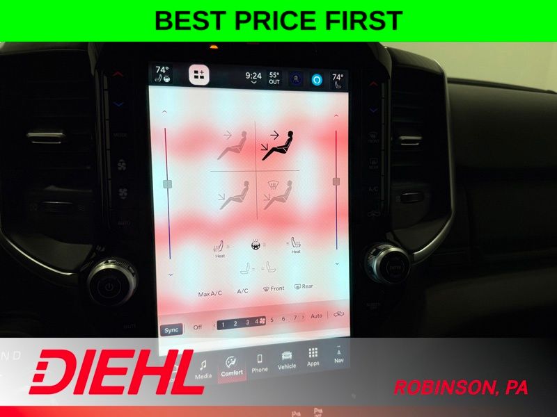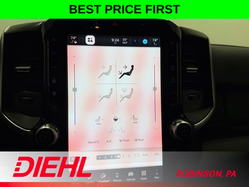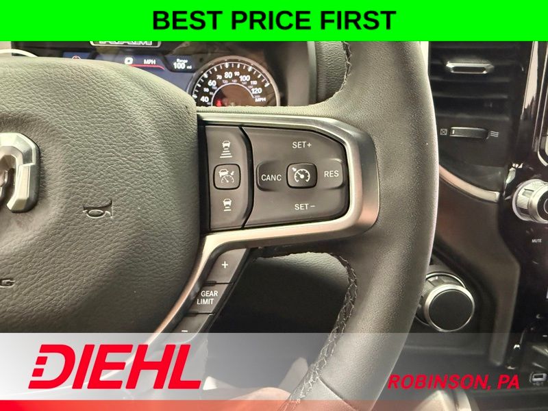 Elevate your driving experience with the Big Horn Level 2 Equipment Group, which includes premium features like a 12-inch touchscreen display, a 9-speaker premium audio system, and a heated steering wheel. The Night Edition adds a bold, blacked-out aesthetic with accents like black exterior mirrors, badging, and tail lamp bezels.