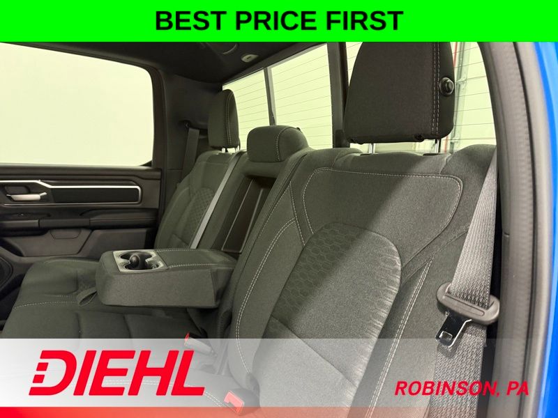 Utility and convenience are at the forefront, with thoughtful features like a 400W inverter, rear power sliding window, and a remote tailgate release. The versatile interior offers ample storage and seating flexibility, making this Ram 1500 a perfect companion for work, play, or family adventures.