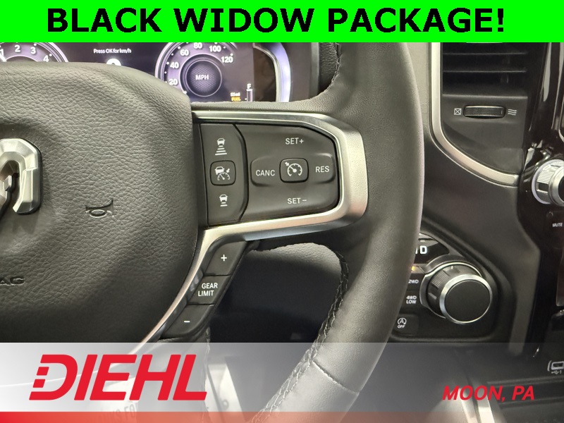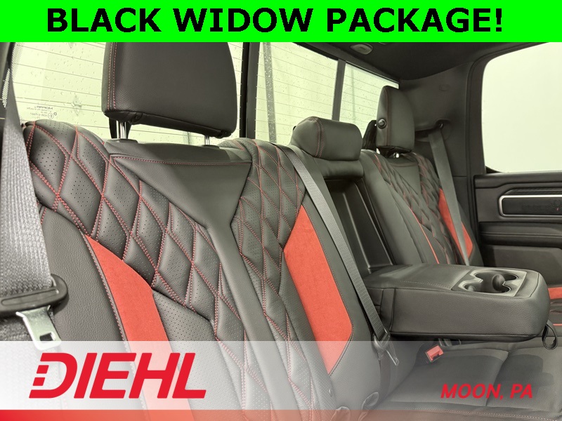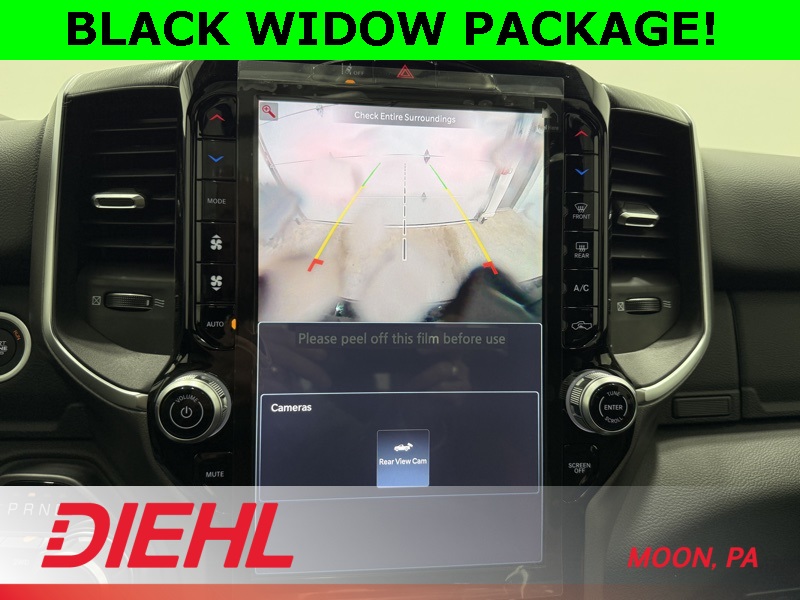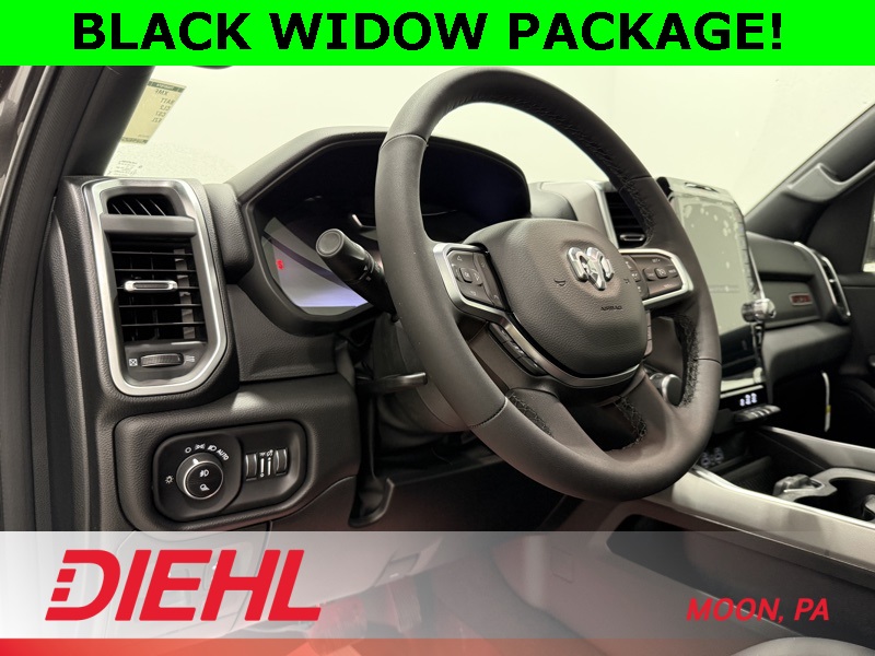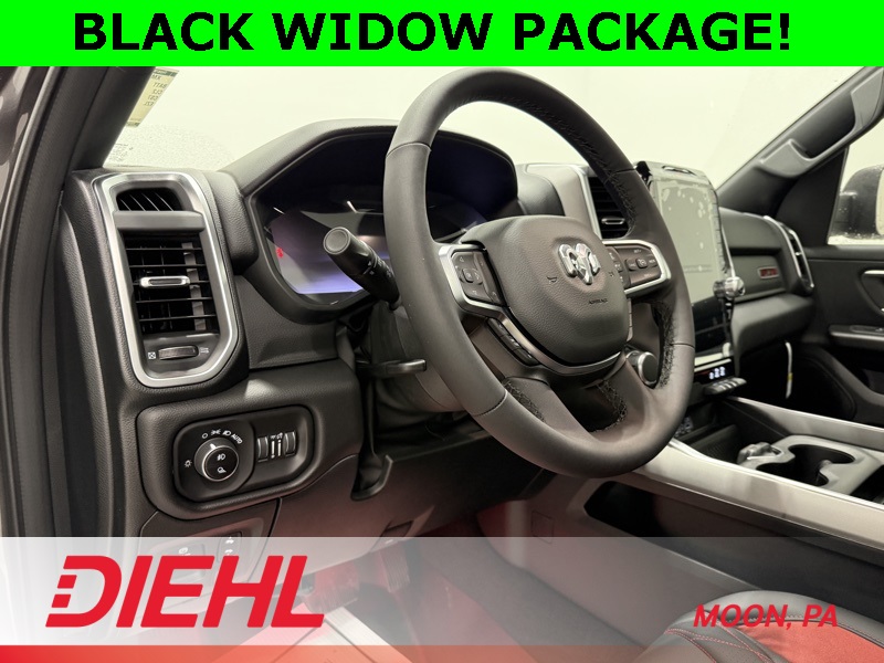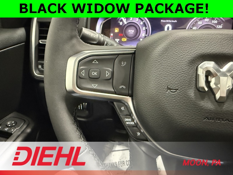 115V Auxiliary Power Outlet, 115V Auxiliary Rear Power Outlet, 12" Touchscreen Display, 2nd Row in Floor Storage Bins, 3 Rear Seat Head Restraints, 4 Way Front Headrests, 400W Inverter, 4G LTE Wi-Fi Hot Spot, 9 Amplified Speakers with Subwoofer, Accent Color Door Handles, Accent Color Premium Power Mirrors, Accent Color Tailgate Handle, Air Conditioning ATC with Dual Zone Control, Anti-Spin Differential Rear Axle, Apple CarPlay, Auto Power-Folding Mirrors, Auto-Dimming Exterior Driver Mirror, Auto-Dimming Rear-View Mirror, Bed Utility Group, Big Horn Level 2 Equipment Group, Black Exterior Mirrors, Black Exterior Truck Badging, Black Headlamp Bezels, Black Interior Accents, Black Painted Exterior Mirrors Caps, Black Premium Power Mirrors, Black Tail Lamp Bezels, Body Color Fender Flares, Body Color Front Bumper, Body Color Rear Bumper with Step Pads, Bucket Seats, Center Console Parts Module, Cluster 7.0" TFT Color Display, Configurable Drive Mode, Connected Travel and Traffic Services, Connectivity - US/Canada, Convex Wide-Angle Exterior Mirror Insert, Deluxe Cloth Bucket Seats, Disassociated Touchscreen Display, Dual Exhaust with Black Tips, Exterior 115V AC Outlet, Exterior Mirrors Courtesy Lamps, Exterior Mirrors with Heating Element, Exterior Mirrors with Supplemental Signals, Front Seat Back Map Pockets, Full Length Floor Console, Global Telematics Box Module, Glove Box Lamp, Google Android Auto, GPS Antenna Input, GPS Navigation, Grille Black Surround Black Mesh, HD Radio, Heated Front Seats, Heated Steering Wheel, Integrated Center Stack Radio, Integrated Voice Command with Bluetooth, Leather Wrapped Steering Wheel, LED Dome Lamp with on/Off Switch, LED Footwell Lighting, Manual Adjust 4-Way Front Passenger Seat, Media Hub with 2 Charge Only USBs, MOPAR 4 Adjustable Cargo Tie-Down Hooks, MOPAR Spray in Bedliner, Night Edition, Overhead LED Lamps, Pick-Up Box Lighting, Power 2-Way Driver Lumbar Adjust, Power Adjust 8-Way Driver Seat, Power Adjustable Pedals, Premium Overhead Console, Quick Order Package 27Z Big Horn, Radio: Uconnect 5 Navigation with 12.0" Display, RAM Grille Badge - Black, Rear 60/40 Folding Seat, Rear Center Armrest, Rear Power Sliding Window, Rear Window Defroster, Remote Tailgate Release, Security Alarm, SiriusXM Radio Service, SiriusXM with 360L, Steering Wheel Mounted Audio Controls, Sun Visors with Illuminated Vanity Mirrors, Universal Garage Door Opener, USB Host Flip, Wheels: 20" x 9.0" Aluminum Painted Clad, Wheels: 20" x 9" Aluminum Chrome Clad.