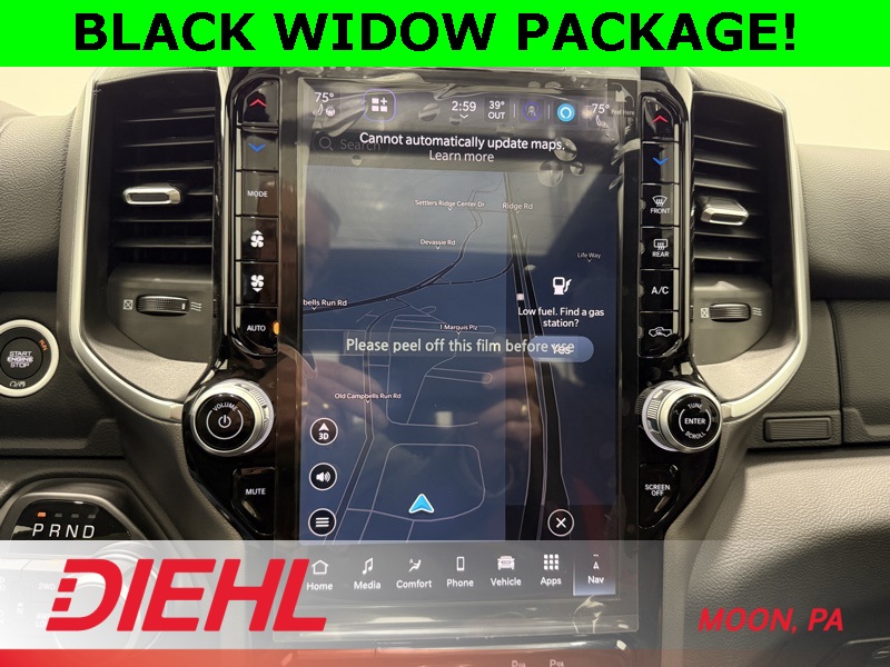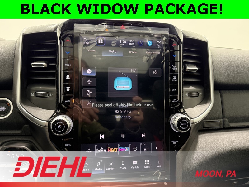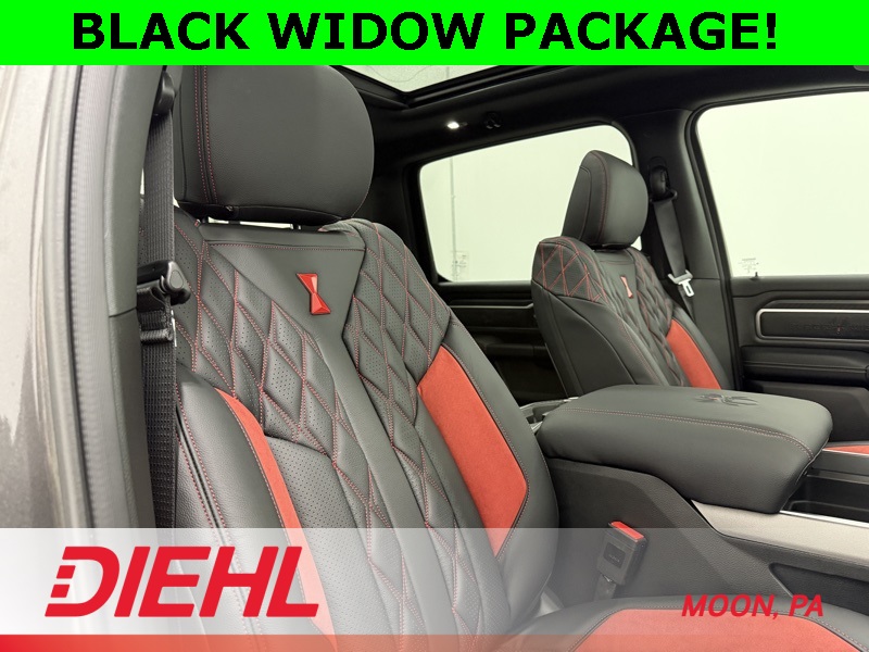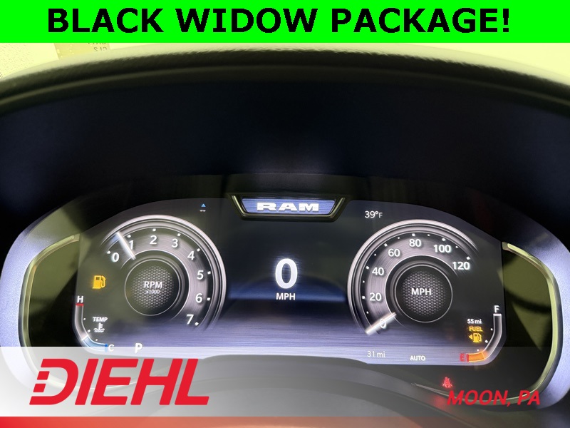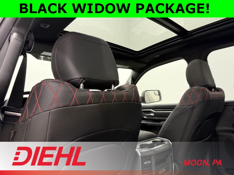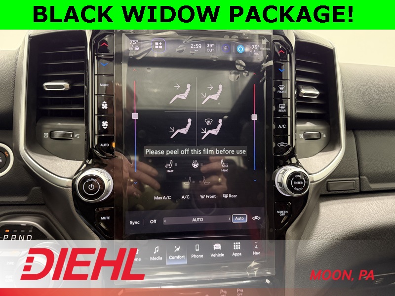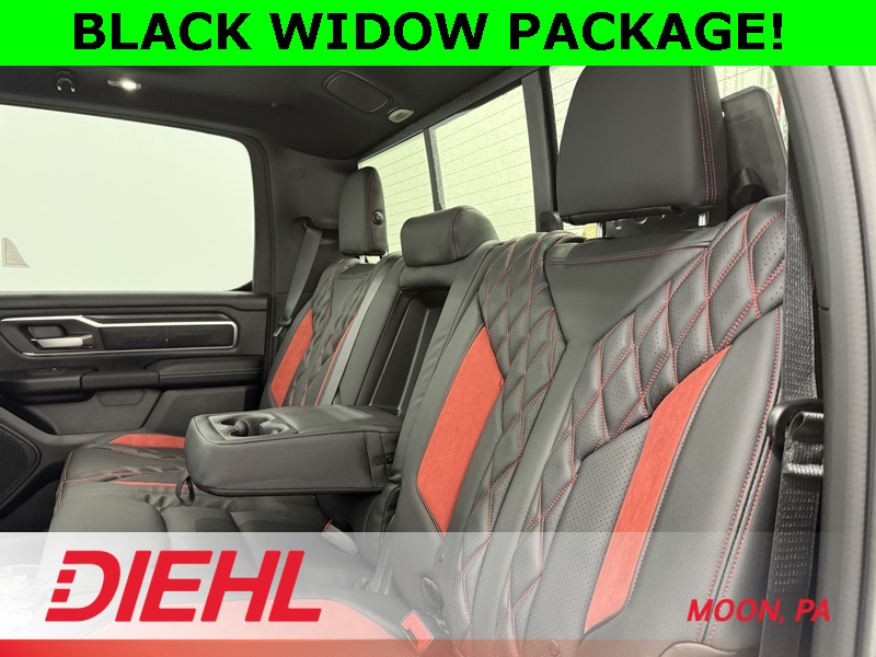 115V Auxiliary Power Outlet, 115V Auxiliary Rear Power Outlet, 12" Touchscreen Display, 2nd Row in Floor Storage Bins, 3 Rear Seat Head Restraints, 4 Way Front Headrests, 400W Inverter, 4G LTE Wi-Fi Hot Spot, 9 Amplified Speakers with Subwoofer, Accent Color Door Handles, Accent Color Premium Power Mirrors, Accent Color Tailgate Handle, Air Conditioning ATC with Dual Zone Control, Anti-Spin Differential Rear Axle, Apple CarPlay, Auto Power-Folding Mirrors, Auto-Dimming Exterior Driver Mirror, Auto-Dimming Rear-View Mirror, Bed Utility Group, Big Horn Level 2 Equipment Group, Black Exterior Mirrors, Black Exterior Truck Badging, Black Headlamp Bezels, Black Interior Accents, Black Painted Exterior Mirrors Caps, Black Premium Power Mirrors, Black Tail Lamp Bezels, Body Color Fender Flares, Body Color Front Bumper, Body Color Rear Bumper with Step Pads, Bucket Seats, Center Console Parts Module, Cluster 7.0" TFT Color Display, Configurable Drive Mode, Connected Travel and Traffic Services, Connectivity - US/Canada, Convex Wide-Angle Exterior Mirror Insert, Deluxe Cloth Bucket Seats, Disassociated Touchscreen Display, Dual Exhaust with Black Tips, Exterior 115V AC Outlet, Exterior Mirrors Courtesy Lamps, Exterior Mirrors with Heating Element, Exterior Mirrors with Supplemental Signals, Front Seat Back Map Pockets, Full Length Floor Console, Global Telematics Box Module, Glove Box Lamp, Google Android Auto, GPS Antenna Input, GPS Navigation, Grille Black Surround Black Mesh, HD Radio, Heated Front Seats, Heated Steering Wheel, Integrated Center Stack Radio, Integrated Voice Command with Bluetooth, Leather Wrapped Steering Wheel, LED Dome Lamp with on/Off Switch, LED Footwell Lighting, Manual Adjust 4-Way Front Passenger Seat, Media Hub with 2 Charge Only USBs, MOPAR 4 Adjustable Cargo Tie-Down Hooks, MOPAR Spray in Bedliner, Night Edition, Overhead LED Lamps, Pick-Up Box Lighting, Power 2-Way Driver Lumbar Adjust, Power Adjust 8-Way Driver Seat, Power Adjustable Pedals, Premium Overhead Console, Quick Order Package 27Z Big Horn, Radio: Uconnect 5 Navigation with 12.0" Display, RAM Grille Badge - Black, Rear 60/40 Folding Seat, Rear Center Armrest, Rear Power Sliding Window, Rear Window Defroster, Remote Tailgate Release, Security Alarm, SiriusXM Radio Service, SiriusXM with 360L, Steering Wheel Mounted Audio Controls, Sun Visors with Illuminated Vanity Mirrors, Universal Garage Door Opener, USB Host Flip, Wheels: 20" x 9.0" Aluminum Painted Clad, Wheels: 20" x 9" Aluminum Chrome Clad.