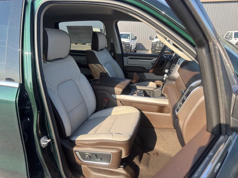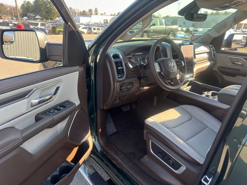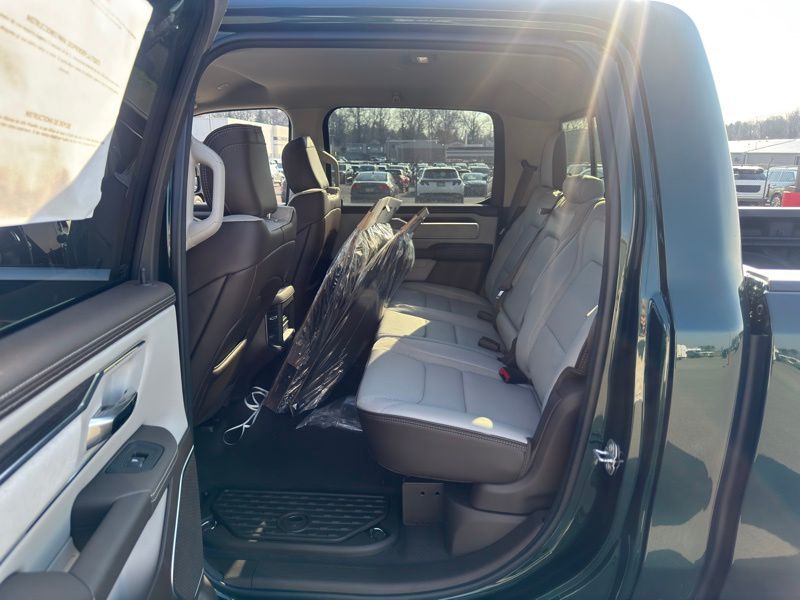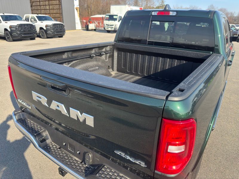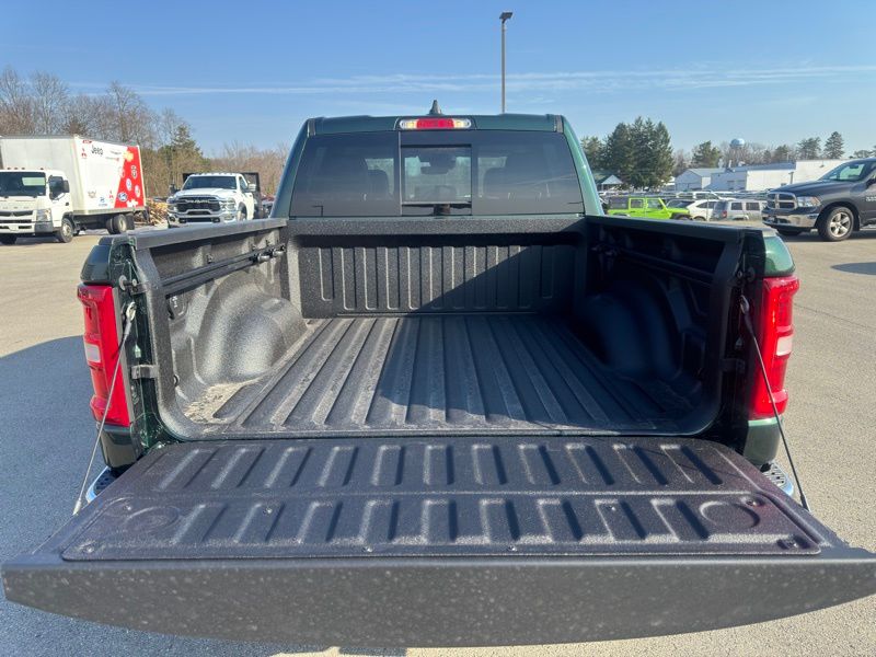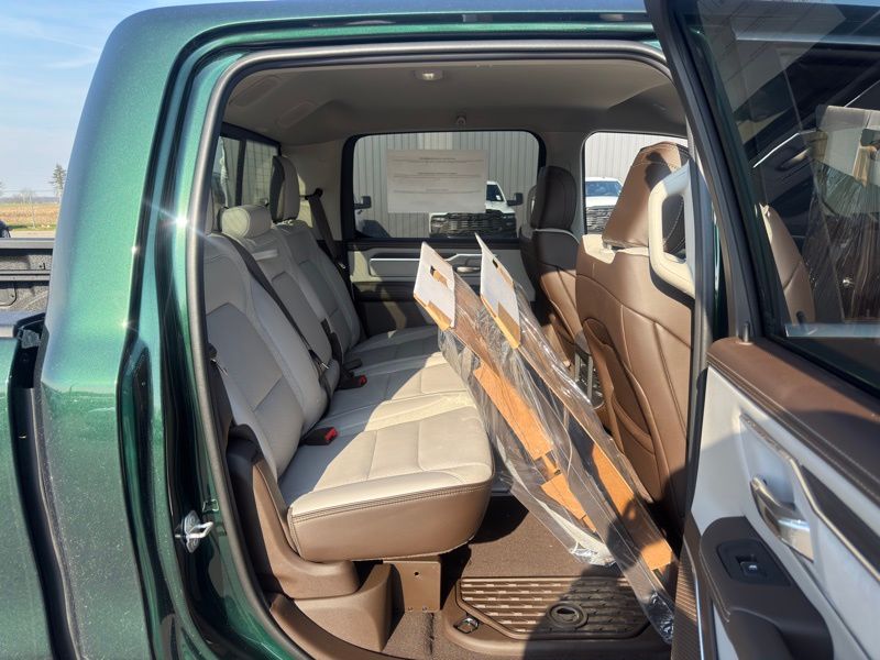 Bed Utility Group (Exterior 115V AC Outlet, MOPAR 4 Adjustable Cargo Tie-Down Hooks, and MOPAR Spray in Bedliner), Chrome Appearance Group (Bright Day Light Opening Moldings and Wheel to Wheel Side Steps), Laramie Level 1 Equipment Group (Rain Sensitive Windshield Wipers and Remote Tailgate Release), Quick Order Package 27H Laramie, 10 Speakers, 4-Wheel Disc Brakes, 4G LTE Wi-Fi Hot Spot, ABS brakes, Active Noise Control System, Adjustable pedals, Air Conditioning, Alloy wheels, AM/FM radio: SiriusXM with 360L, Apple CarPlay/Android Auto, Audio memory, Auto High-beam Headlights, Auto Power-Folding Mirrors, Auto-dimming door mirrors, Auto-Dimming Exterior Driver Mirror, Auto-dimming Rear-View mirror, Automatic temperature control, Brake assist, Bumpers: chrome, Chrome Exterior Mirrors, Compass, Connected Travel and Traffic Services, Connectivity - US/Canada, Convex Wide-Angle Exterior Mirror Insert, Delay-off headlights, Driver door bin, Driver vanity mirror, Dual front impact airbags, Dual front side impact airbags, Electronic Stability Control, Exterior Mirrors Courtesy Lamps, Exterior Mirrors with Heating Element, Exterior Mirrors with Memory, Exterior Mirrors with Supplemental Signals, Front anti-roll bar, Front Bucket Seats, Front Center Armrest w/Storage, Front dual zone A/C, Front fog lights, Front reading lights, Front wheel independent suspension, Fully automatic headlights, Garage door transmitter, GPS Navigation, Heated door mirrors, Heated front seats, Heated rear seats, Heated steering wheel, Illuminated entry, Integrated Center Stack Radio, Integrated Voice Command with Bluetooth, Leather steering wheel, Leather Trimmed Bucket Seats, Low tire pressure warning, Memory seat, MOPAR Front and Rear Rubber Floor Mats, Navigation System, Occupant sensing airbag, Off-Road Information Pages, Outside temperature display, Overhead airbag, Overhead console, Panic alarm, ParkView Rear Back-Up Camera, Passenger door bin, Passenger vanity mirror, Pedal memory, Power door mirrors, Power driver seat, Power passenger seat, Power steering, Power windows, Radio data system, Radio: Uconnect 5 Navigation with 12.0" Display, RAM Grille Badge - Chrome, Rear anti-roll bar, Rear reading lights, Rear seat center armrest, Rear step bumper, Rear Wheelhouse Liners, Remote keyless entry, Security system, SiriusXM Radio Service, SiriusXM with 360L, Speed control, Split folding rear seat, Steering wheel mounted audio controls, Tachometer, Telescoping steering wheel, Tilt steering wheel, Traction control, Trailer Brake Control, Trip computer, Turn signal indicator mirrors, USB Host Flip, Variably intermittent wipers, Ventilated front seats, Voltmeter, and Wheels: 20" x 9" Premium Paint/Polish. Serrano Green Metallic 2026 Ram 1500 Laramie 4WD 8-Speed Automatic HEMI 5.7L V8 Multi Displacement VVT eTorque